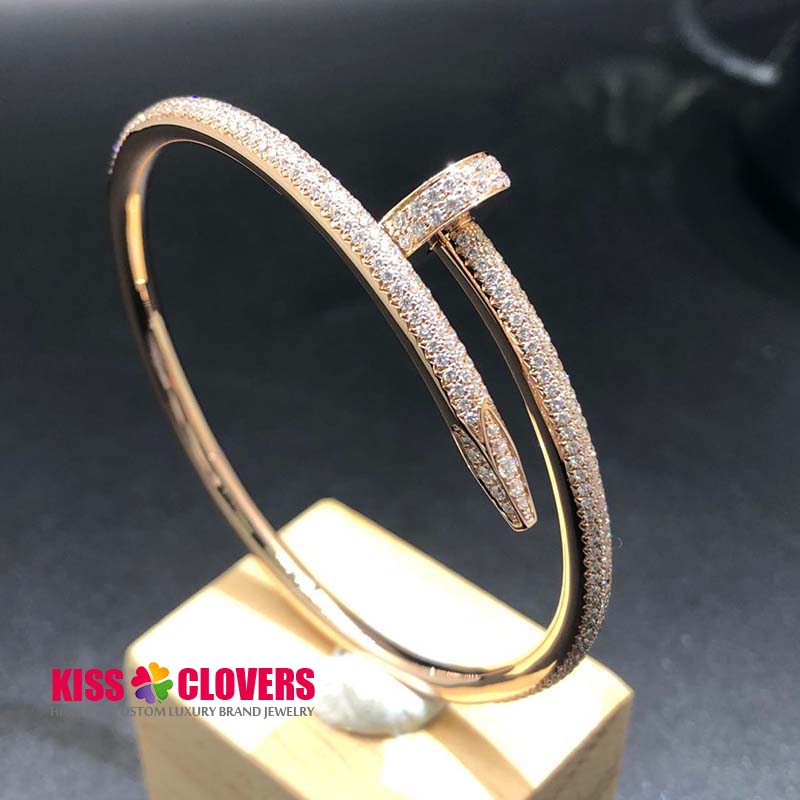 Classic Cartier Juste Un Clou Nail Bangle Bracelet 18K Pink Gold with 374 Diamonds.