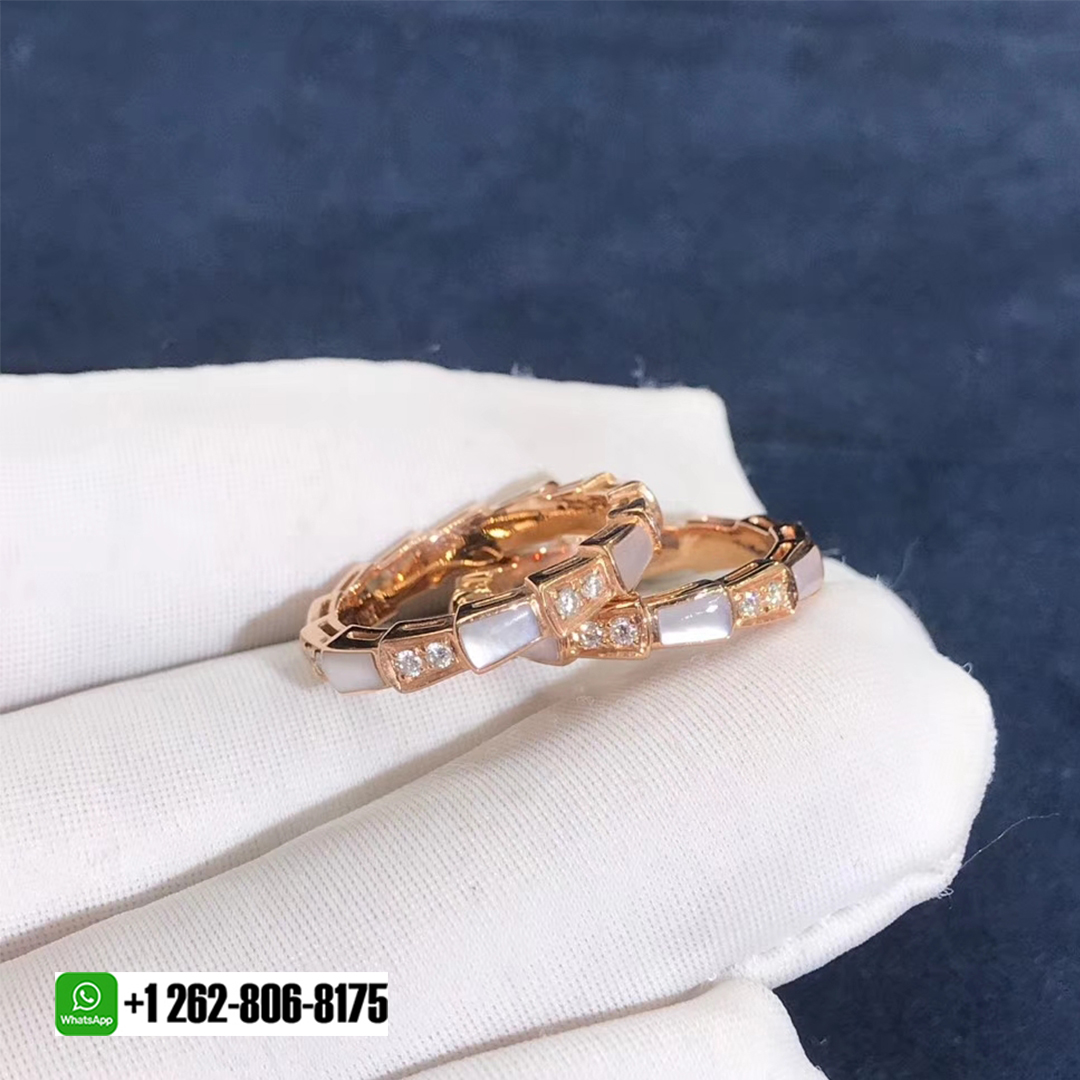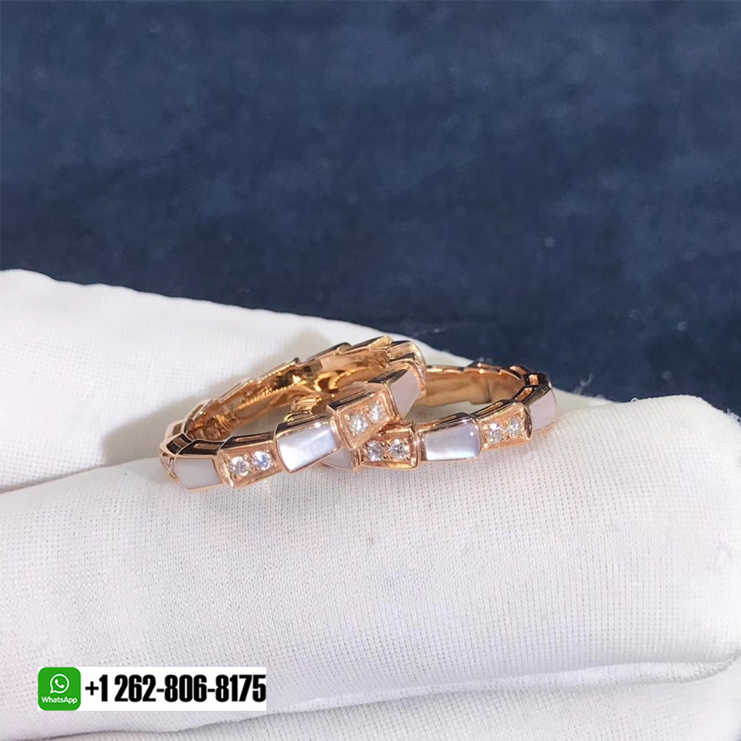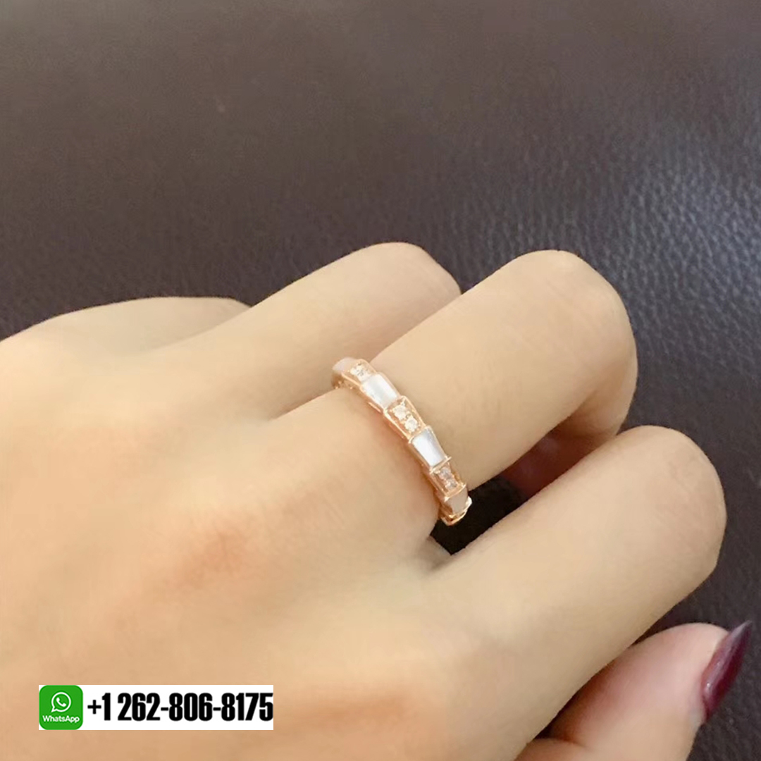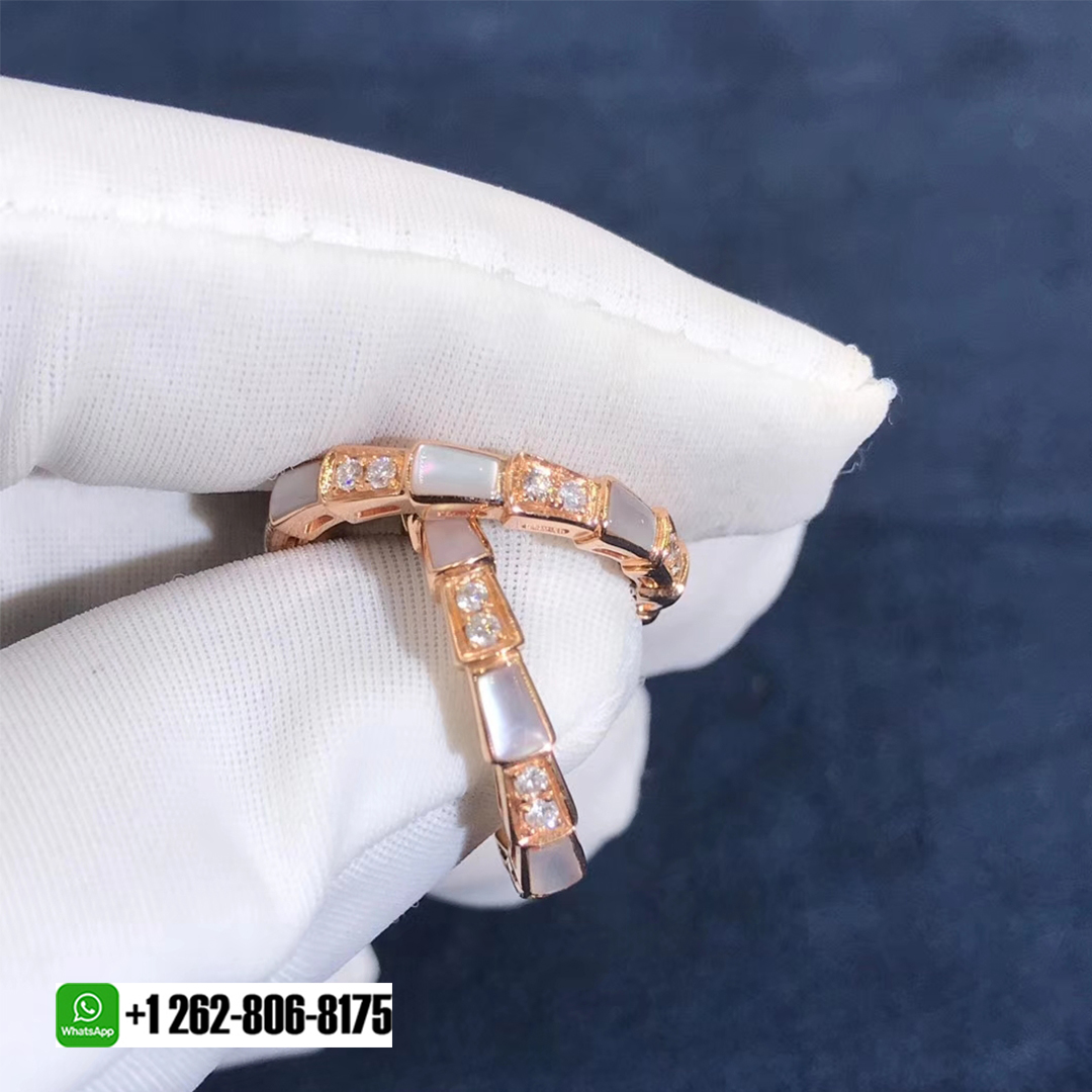 • Bulgari 18k Rose Gold Mother-of-pearl and Pavé diamonds Serpenti Viper Band Ring 353198
