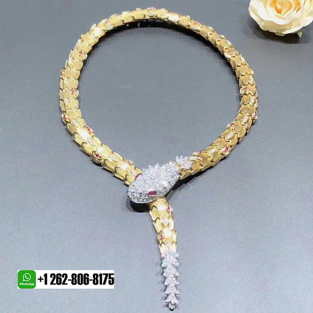 BeRealReal is a professional jewelry factory with more than 10 years experience. We can make any design of gold & diamonds jewelry as per your requirements. If you are interested in this Authentic Bvlgari 18k Gold Ruby and Diamonds Serpenti High Jewelry Necklace, Please contact us via the contact form via whatsapp +1 262 806 8175 or email [email protected].