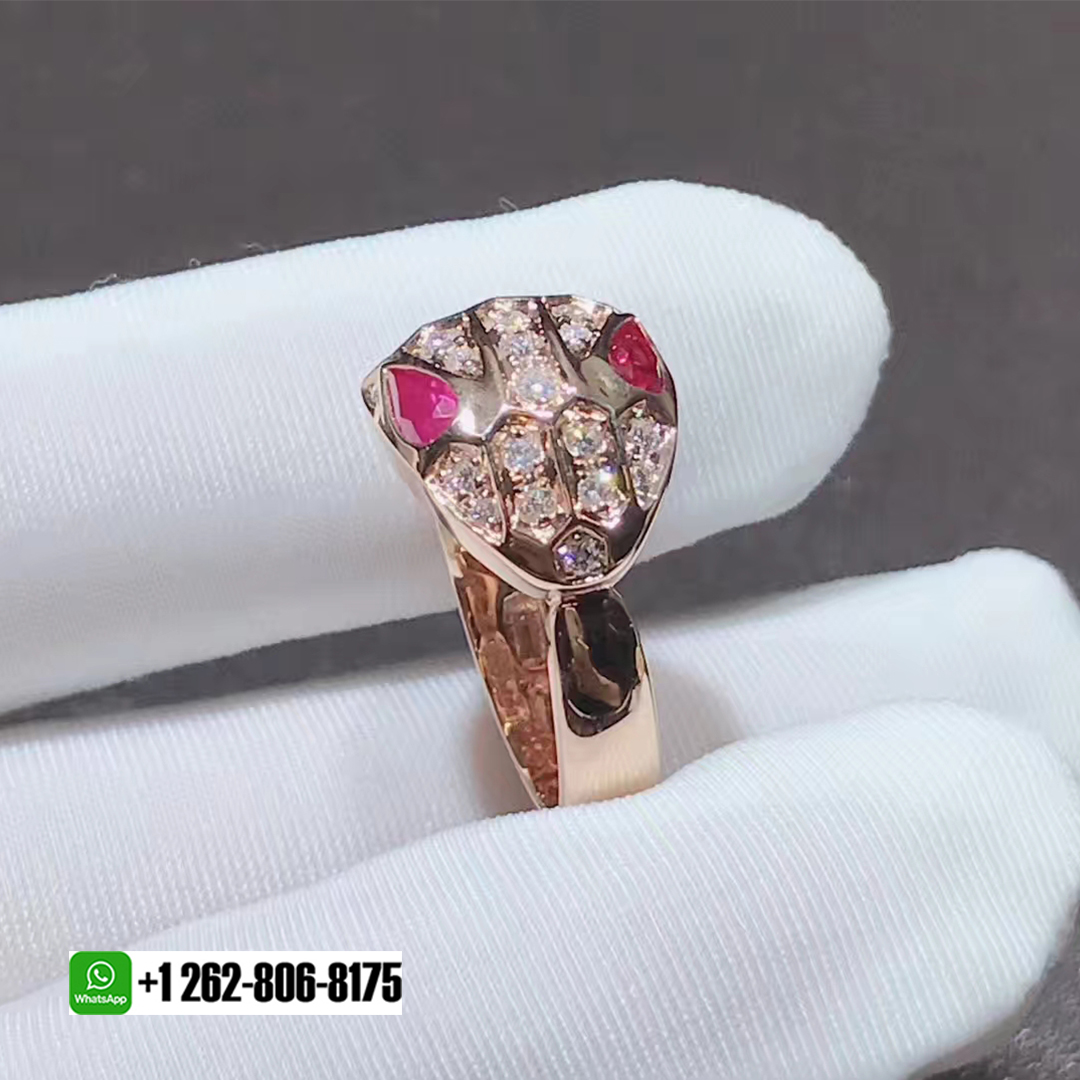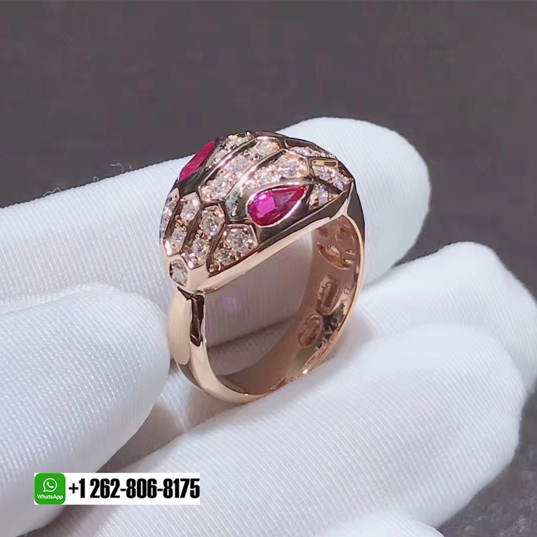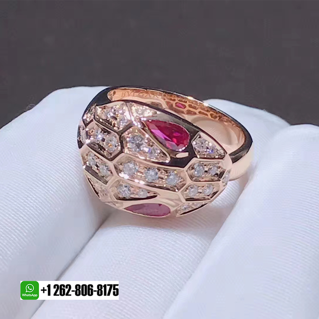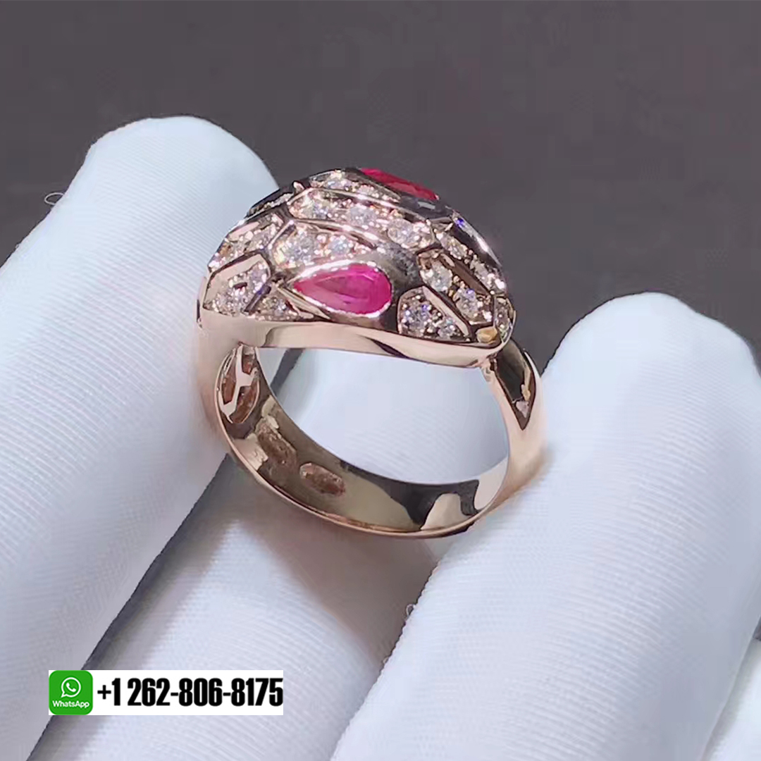 • Bvlgari 18k Rose Gold Rubellite Diamond Serpenti Ring 352808