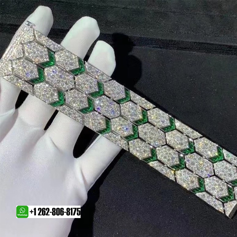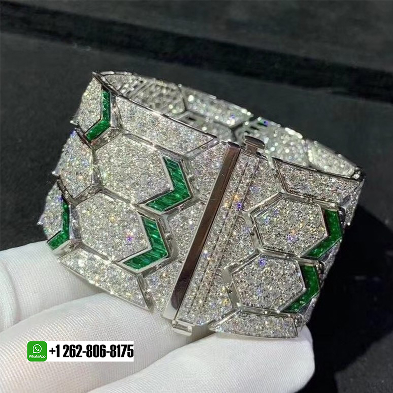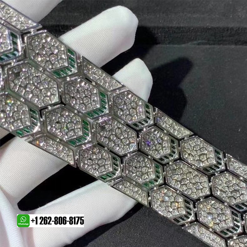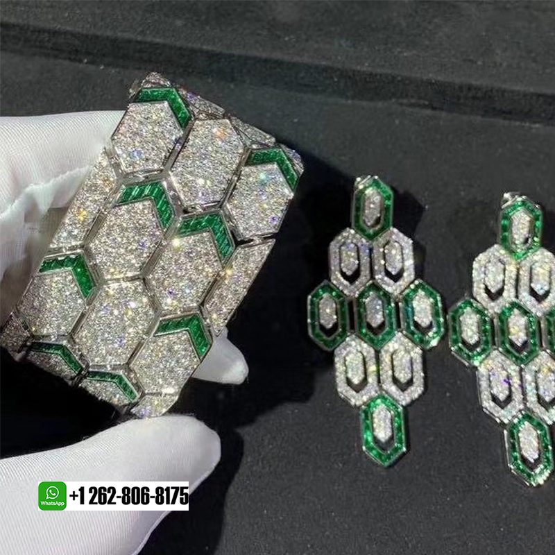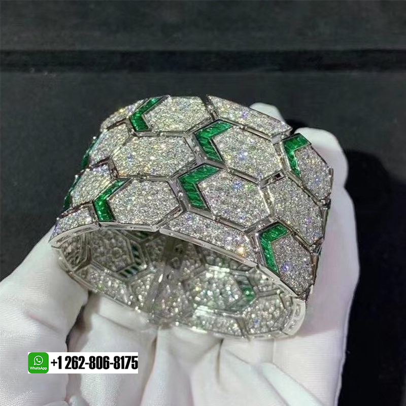 BeRealReal is a professional jewelry factory with more than 10 years experience. We can make any design of gold & diamonds jewelry as per your requirements. If you are interested in this Authentic Bvlgari 18K White Gold Pave Diamond and Emeralds Serpenti High Jewelry Bracelet, Please contact us via the contact form via whatsapp +1 262 806 8175 or email [email protected].