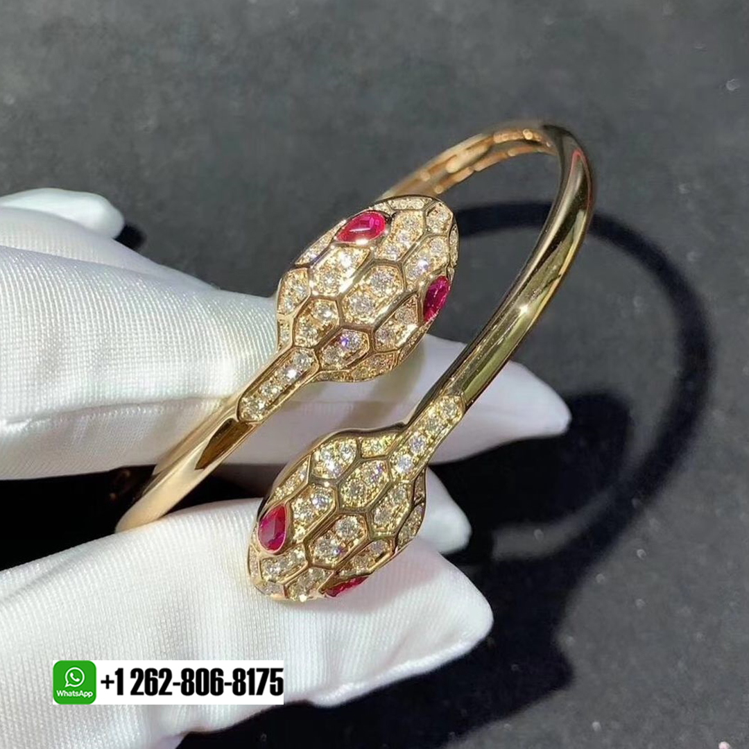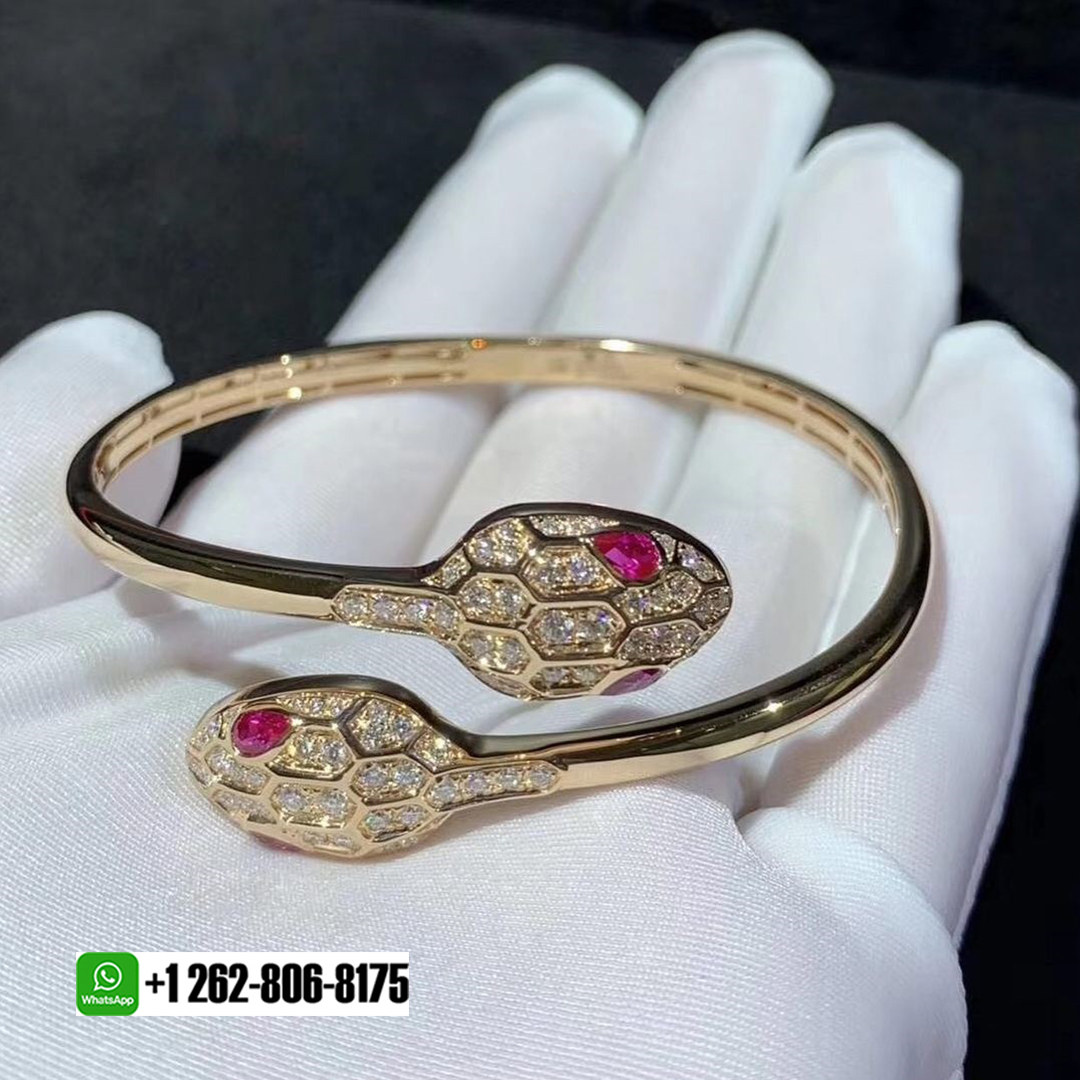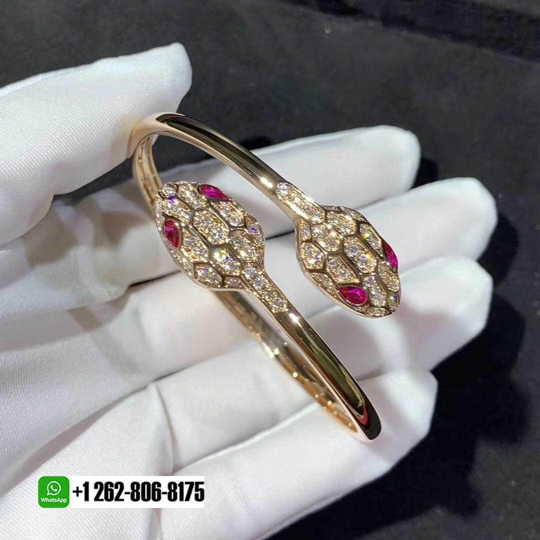 • Bvlgari Serpenti 18k Rose Gold Rubellite Eyes and Pavé Diamonds Bracelet 356504