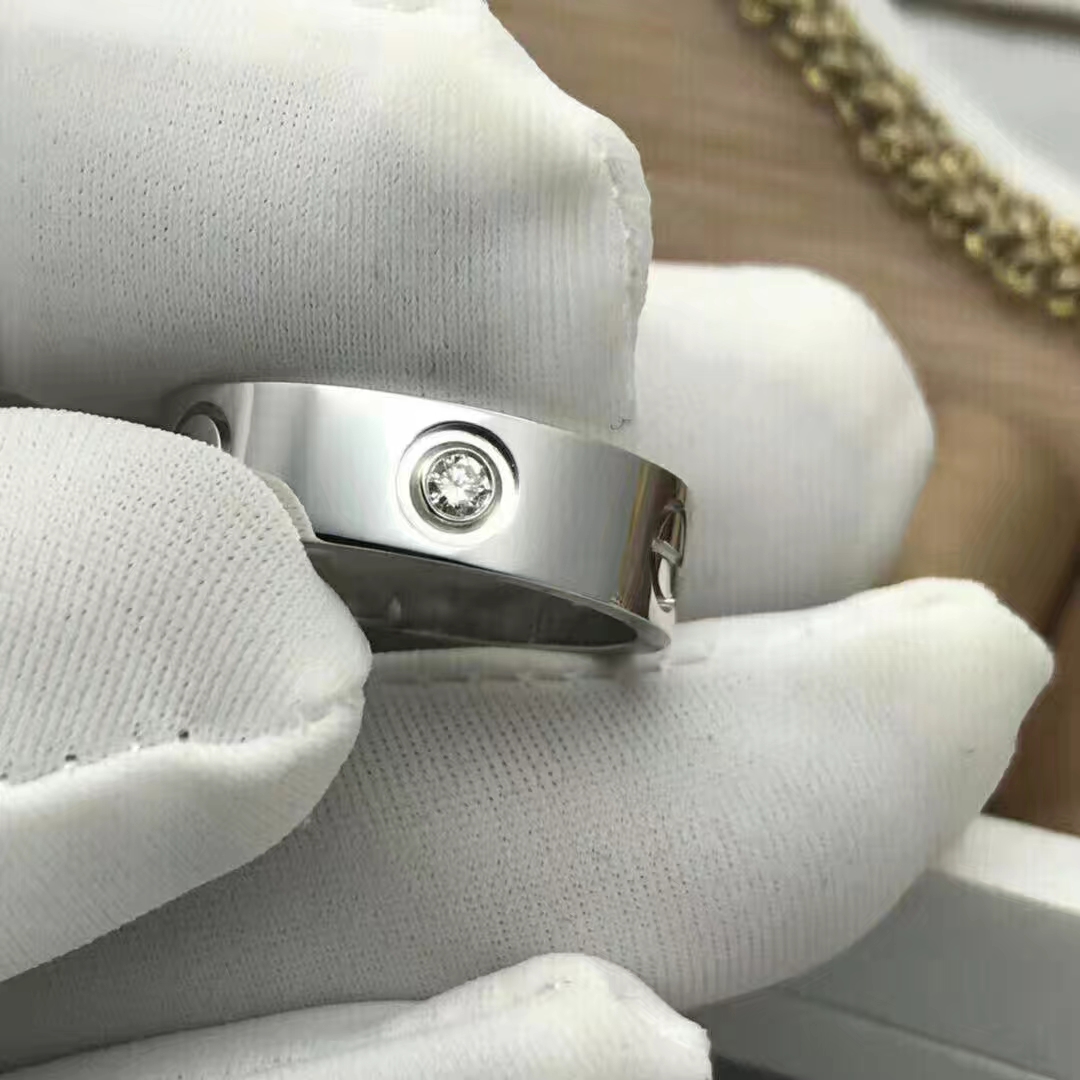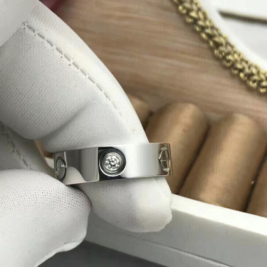 • Cartier 18K White Gold 3 Diamonds Love Ring B4032500