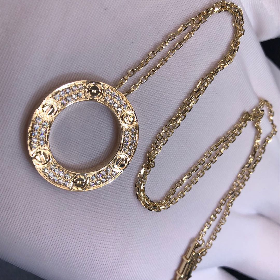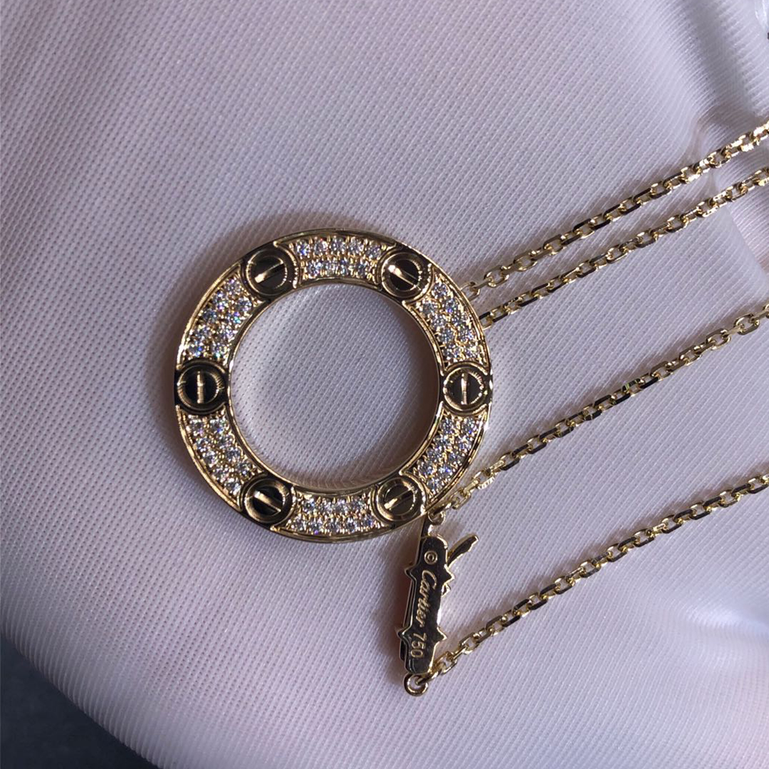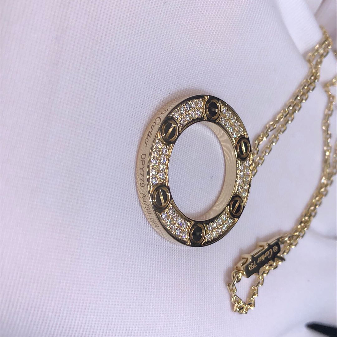 Buy Real solid 18k gold and genuine diamonds Cartier jewelry from BeRealReal.com. Top workmanship and factory direct selling. If you love this Authentic Cartier 18k Yellow Gold Pavé Diamond Love Pendant Necklace, Please inquire us via E-mail [email protected] or Whatsapp +1 (262)806-8175 for pricing.