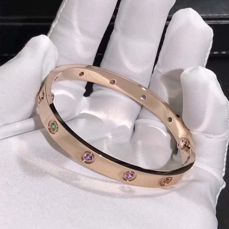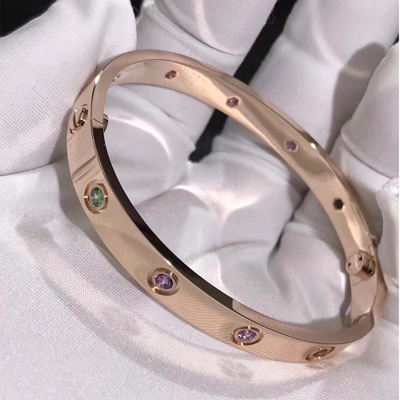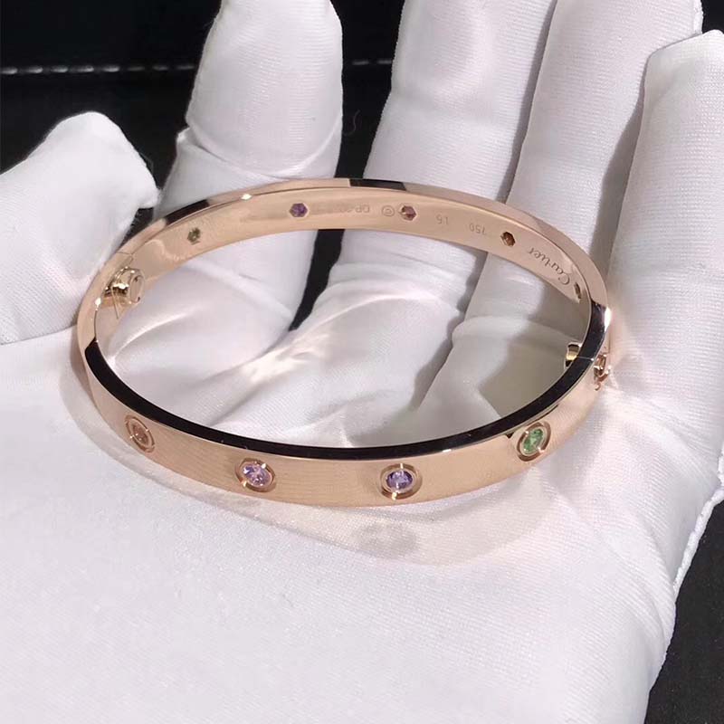 Do you love this 18k rose gold 10 Multi-Gemstones Cartier love bracelet? Here at BeRealReal.com, we can do specially for you in amazing price. 100% mirror quality, real solid 18k gold and genuine diamonds guaranteed. Top workmanship and factory direct selling. Please inquire us via email [email protected] or whatsapp +1 (262)806-8175 for pricing.