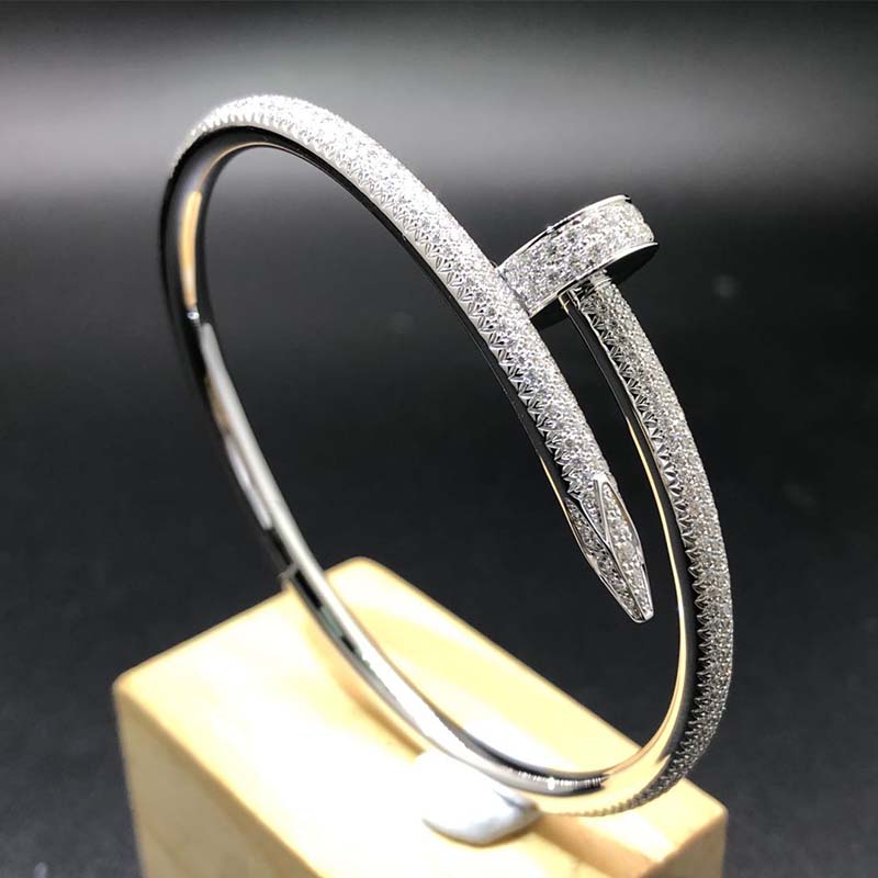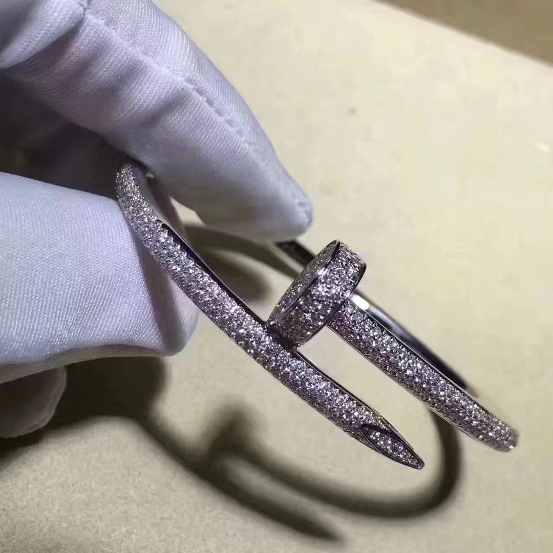 • Classic Cartier Juste Un Clou Nail Bracelet 18K White Gold with 374 Diamond Paved N6707317