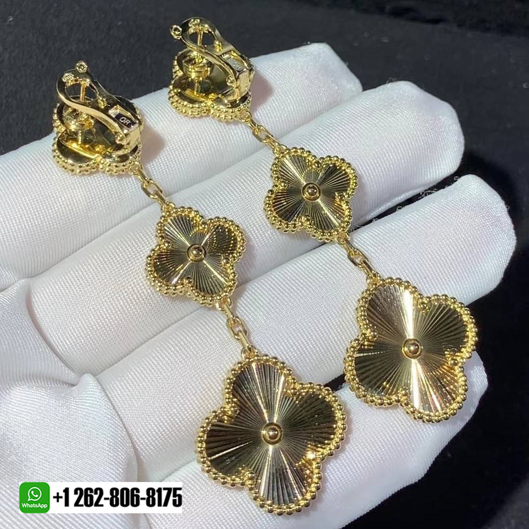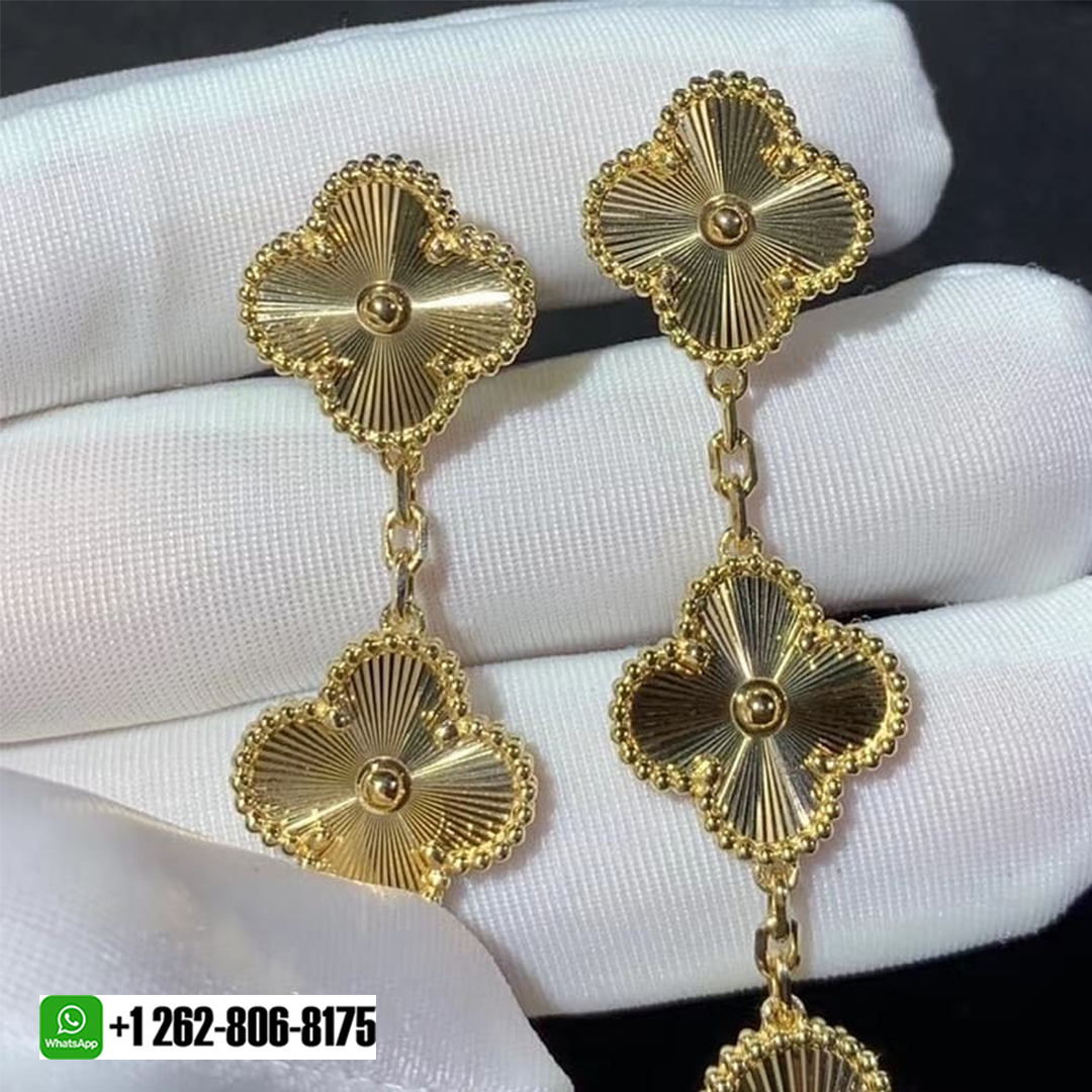Buy Real solid 18k gold and genuine diamonds Van Cleef & Arpels jewelry from BeRealReal.com. Top workmanship and factory direct selling. If you love this Custom Made Van Cleef & Arpels Guilloché Yellow Gold Magic Alhambra 3 Motifs Drop Earrings, Please inquire us via E-mail [email protected] or Whatsapp +1 (262)806-8175 for pricing.