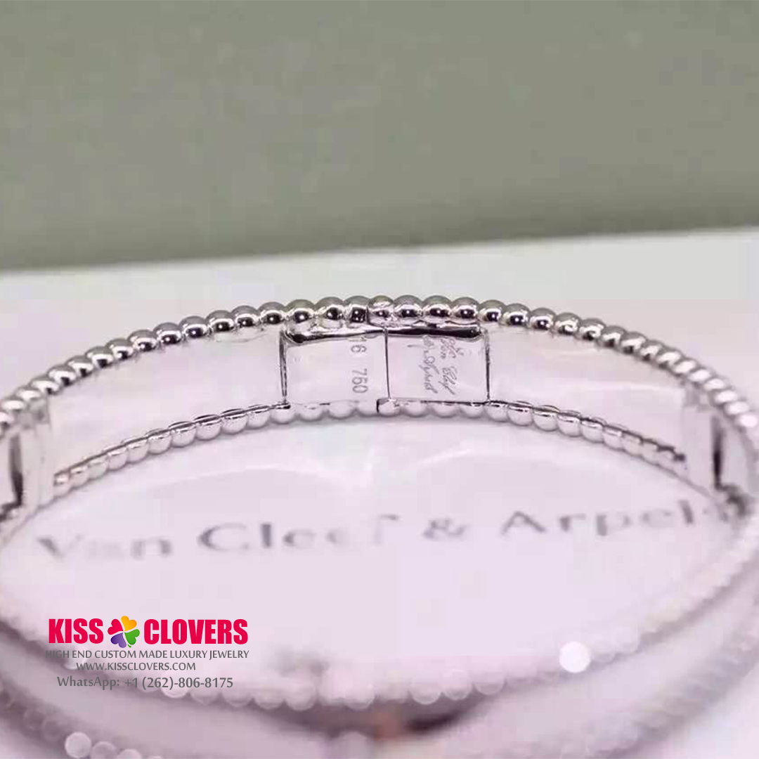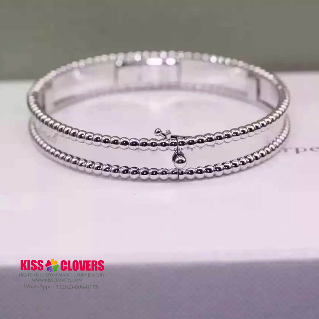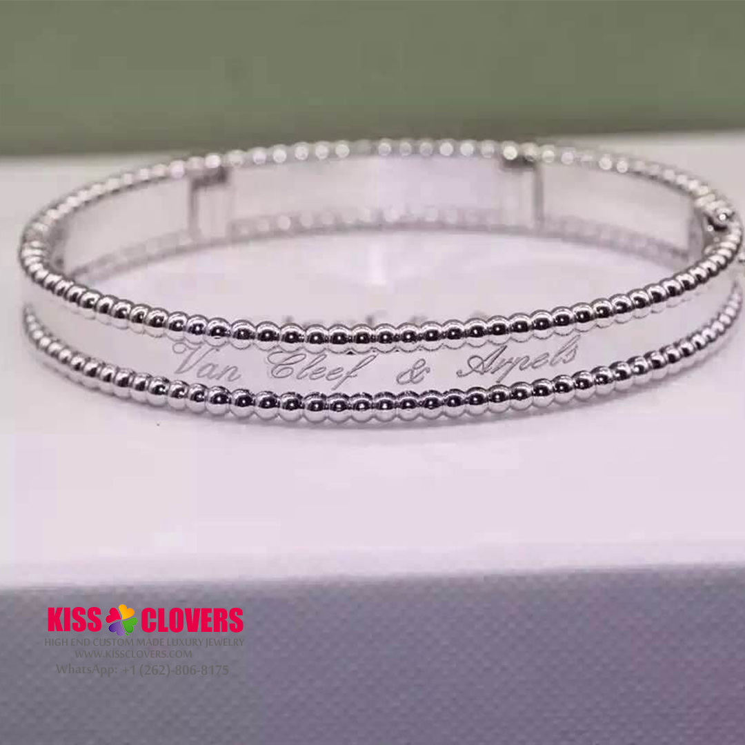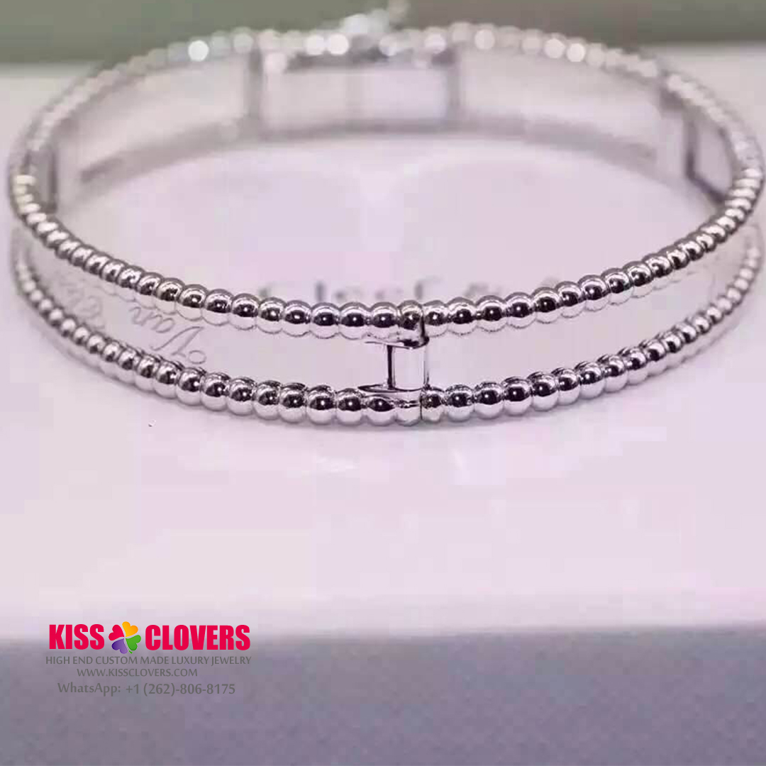 • Custom Van Cleef & Arpels 18K White Gold Medium Model Perlee Signature Bracelet VCARP3K800
