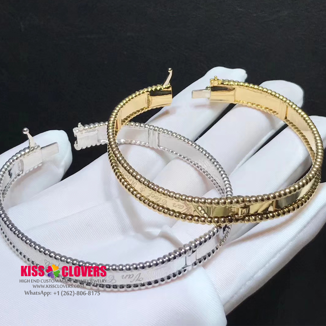 The Perlée™ signature jewelry creations are engraved with the arabesques of a calligraphed Van Cleef & Arpels signature. Polished to a mirror finish, they create a distinctively modern look.