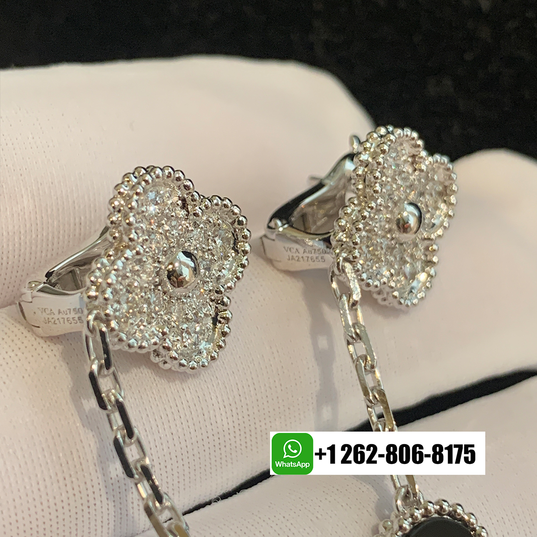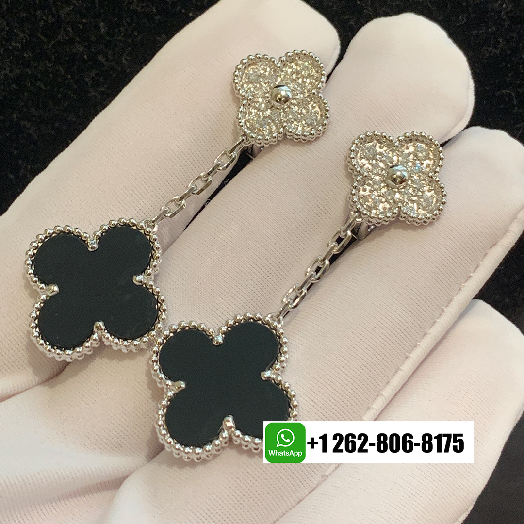 BeRealReal is a professional jewelry factory with more than 10 years experience. We can make any design of gold & diamonds jewelry as per your requirements. If you are interested in this Authentic Van Cleef & Arpels Magic Alhambra 2 Motifs 18K White Gold Onyx Diamond Earrings but don’t want break your bank, So please contact us via the contact form via whatsapp +1 262 806 8175 or email [email protected], you will get it in factory drect selling price!