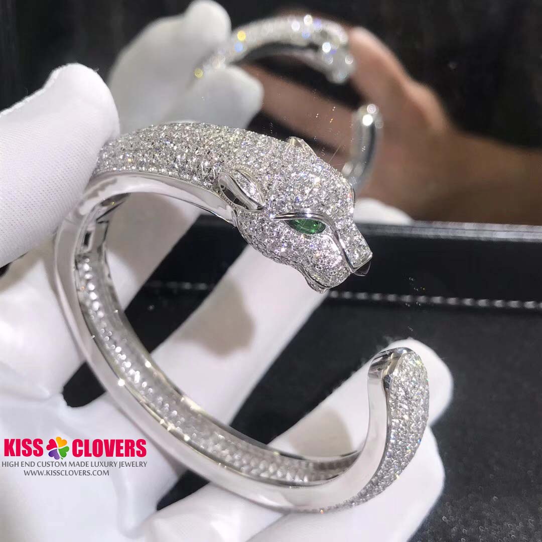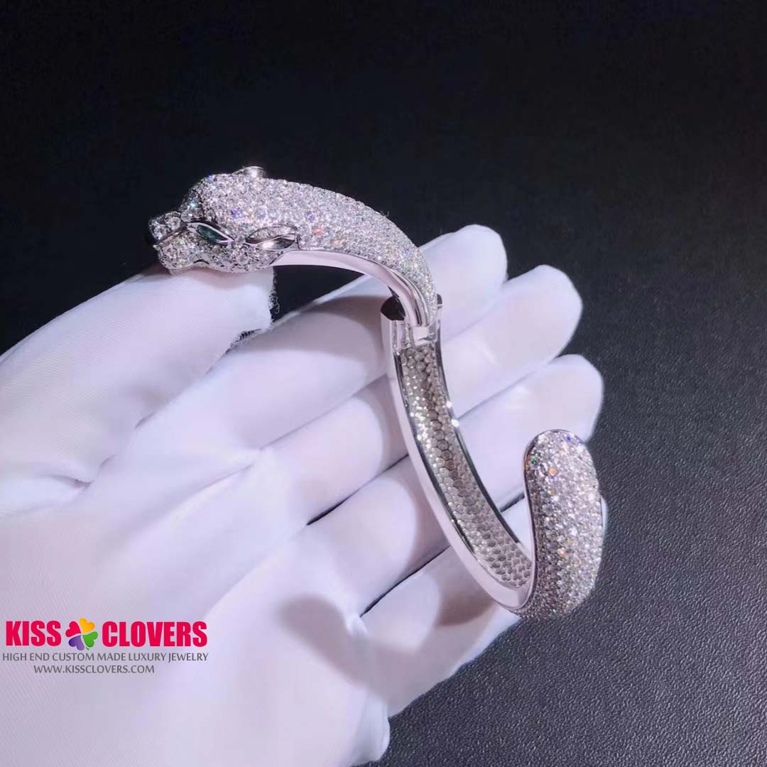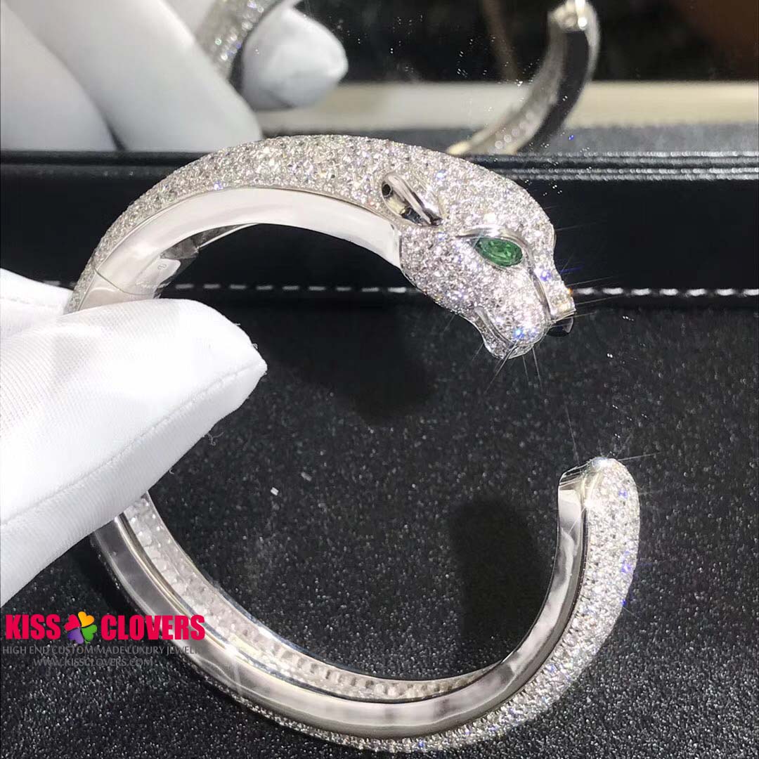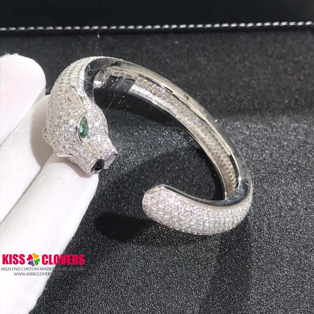 • Panthere de Cartier 18K White Gold 16.02ct Diamond Emerald Onyx Bracelet H6007417
