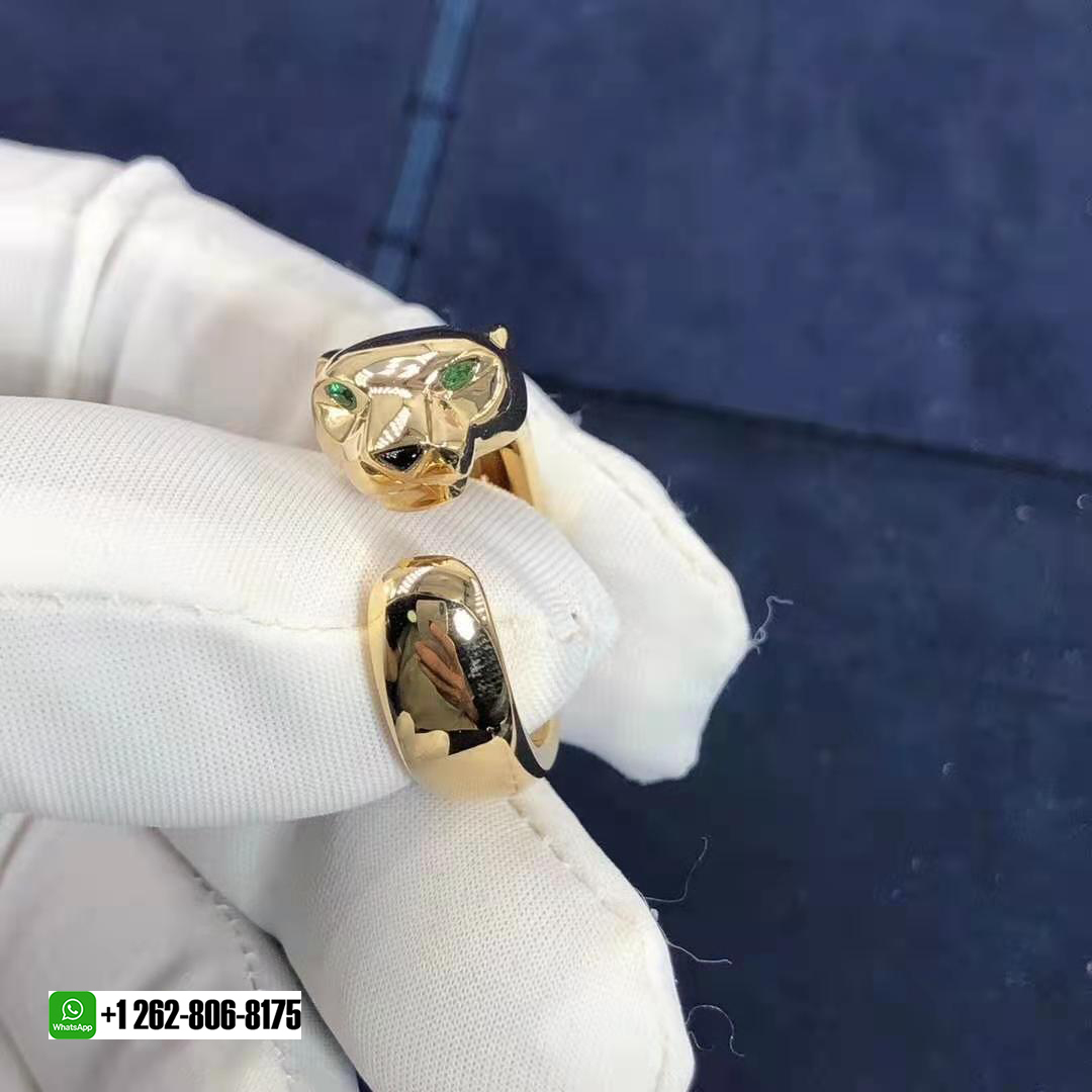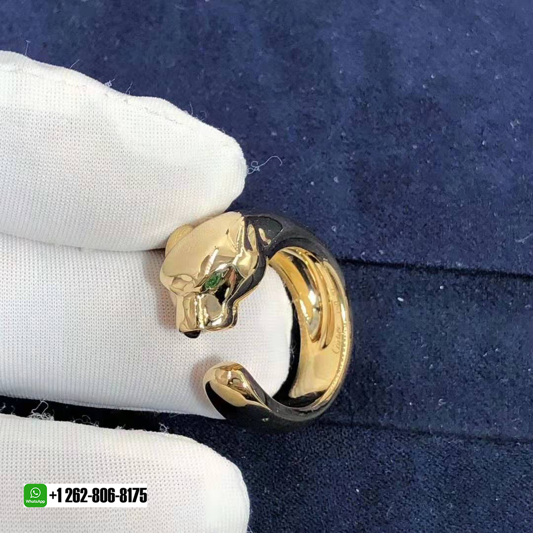 • Panthere de Cartier 18k Yellow Gold Tsavorite Garnets and Onyx Ring B4085900