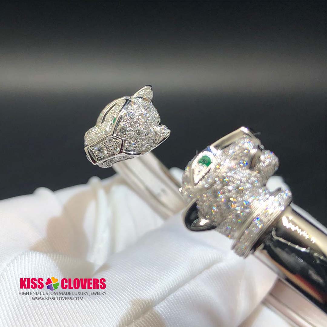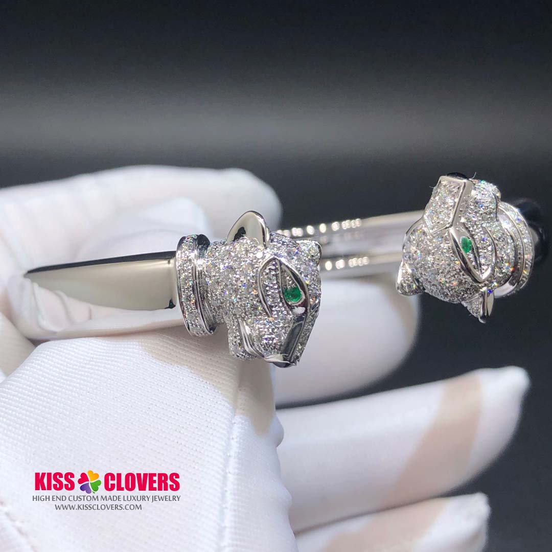 Panthère de Cartier Bracelet Double Panthere Heads 18K White Gold set with 194 Diamonds, Emeralds and Onyx N6706217