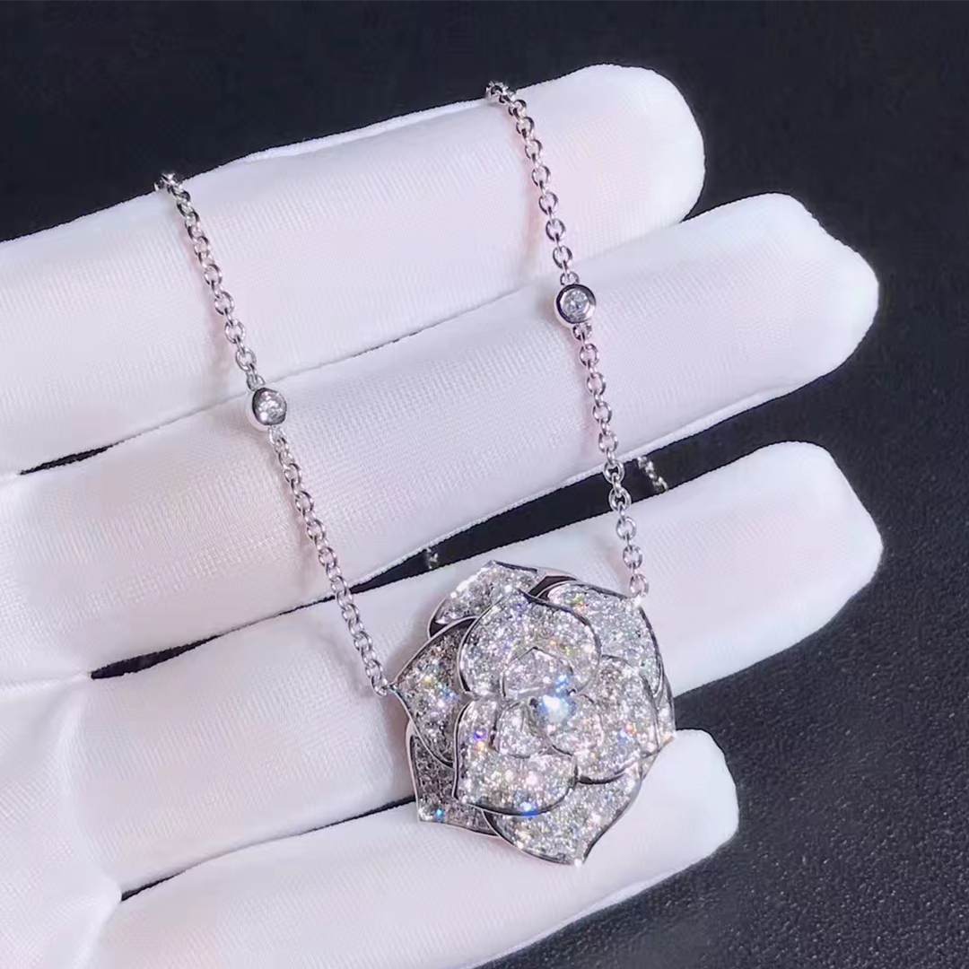 • Piaget 18k White Gold with 118 Diamonds 2.86ct Rose Pendant Necklace G33U0061