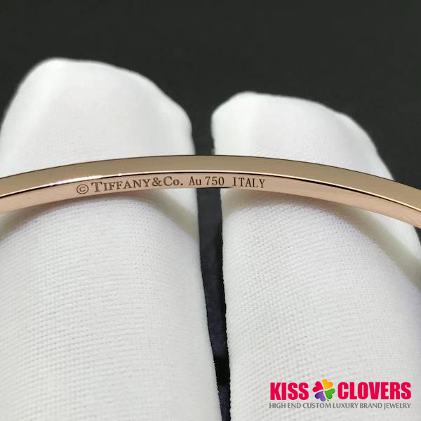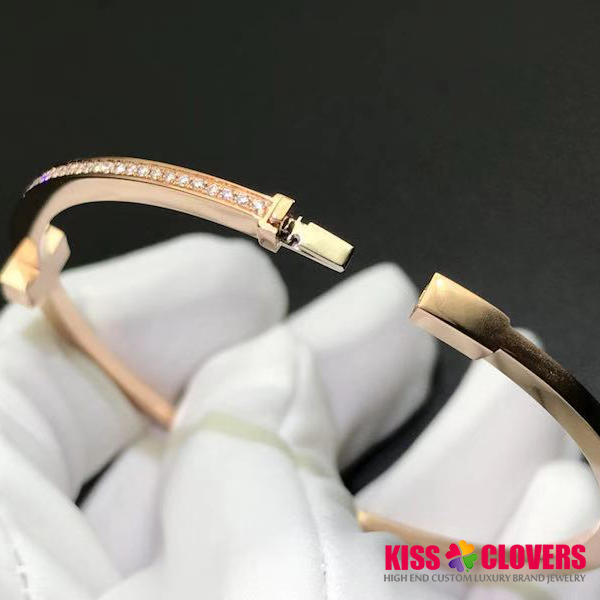 • Tiffany 18K Rose Gold Diamond Hinged T Wire Bangle Bracelet