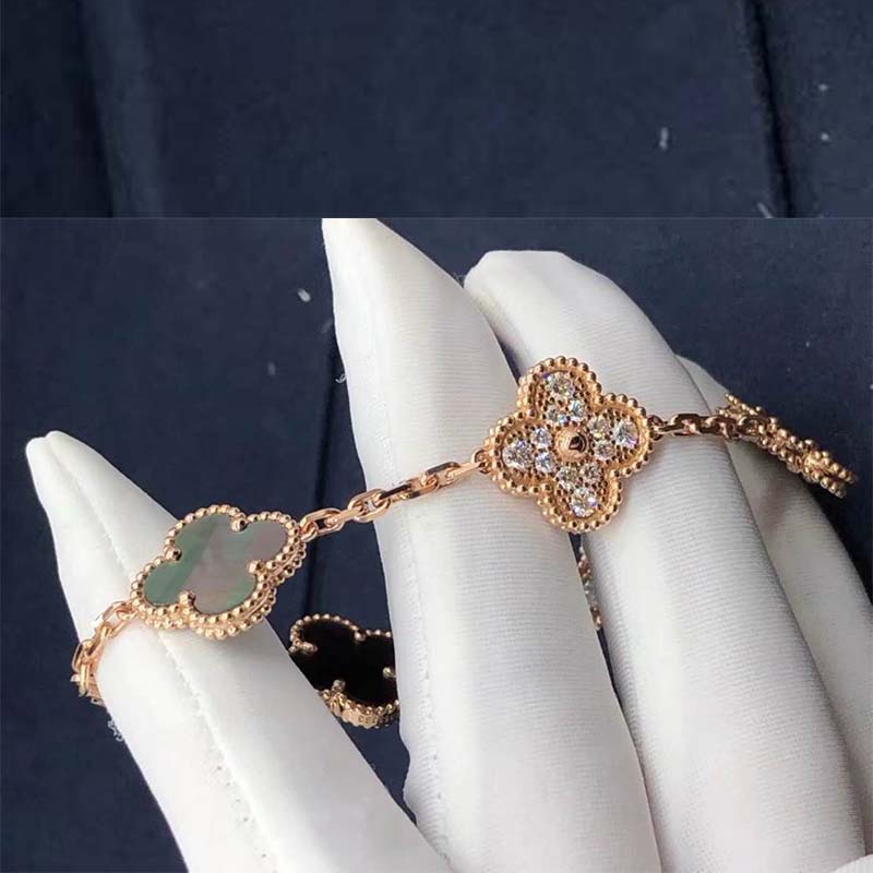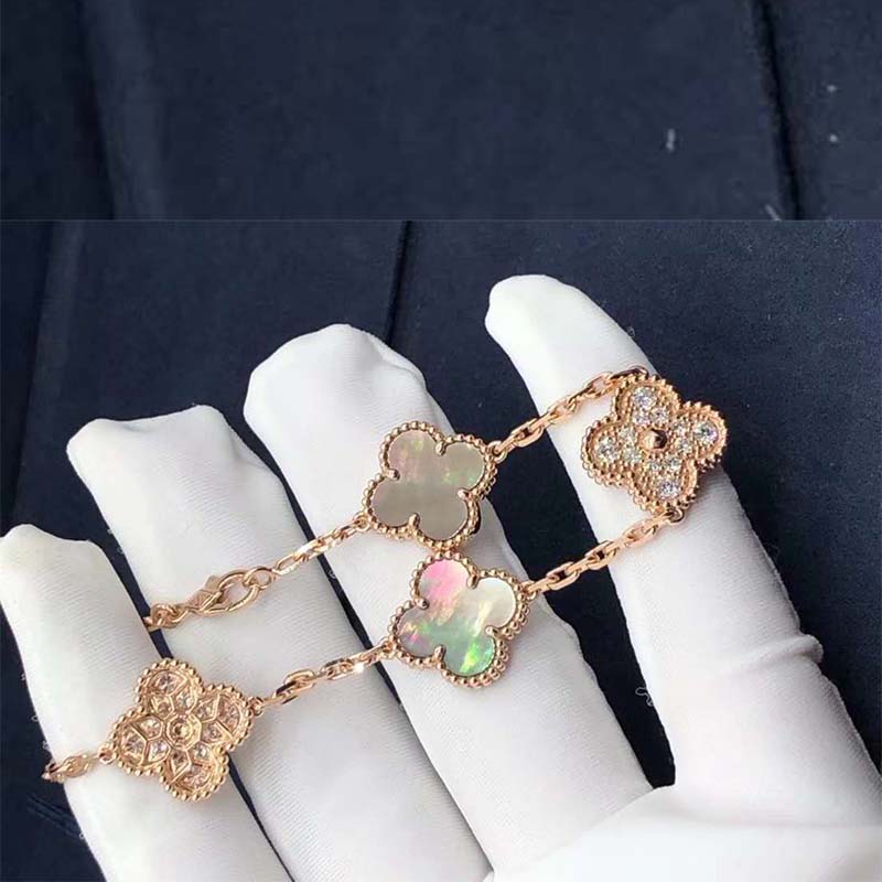 Do you love this Custom made Van Cleef & Arpels 18K Rose Gold Diamond Gray Mother of Pearl 5 Motifs Vintage Alhambra Bracelet? Here at BeRealReal.com, we can do specially for you in amazing price. 100% mirror quality, real solid 18k gold and genuine diamonds guaranteed. Top workmanship and factory direct selling. Please inquire us via E-mail [email protected] or Whatsapp +1 (262)806-8175 for pricing.