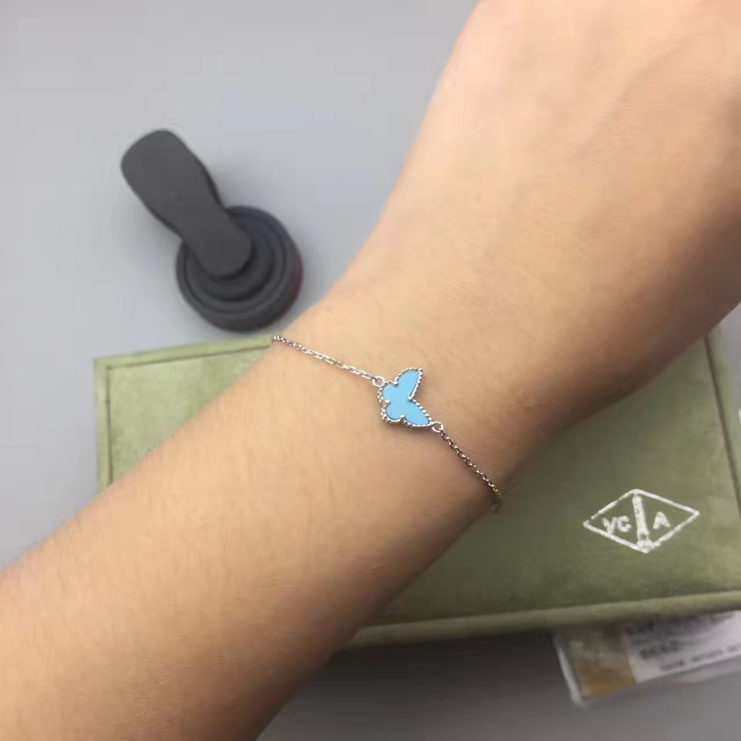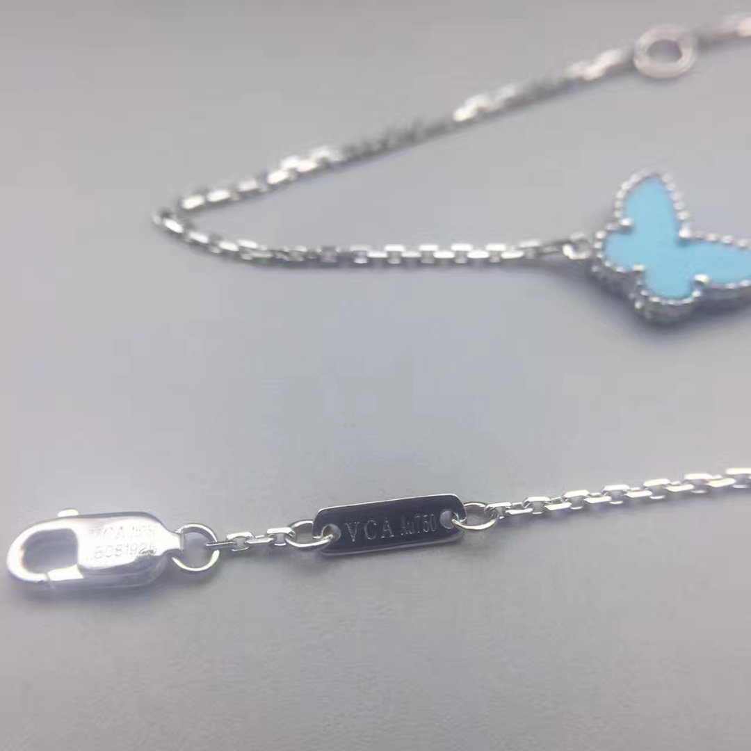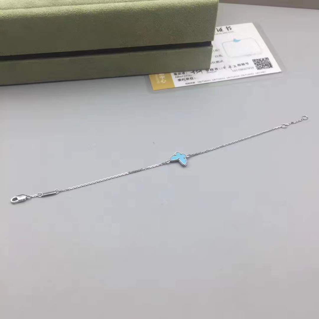 • Van Cleef & Arpels 18K White Gold 1 Motif Turquoise Sweet Alhambra Butterfly Bracelet VCARF80400