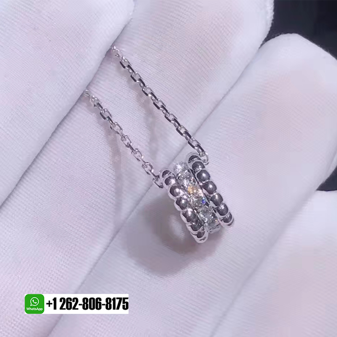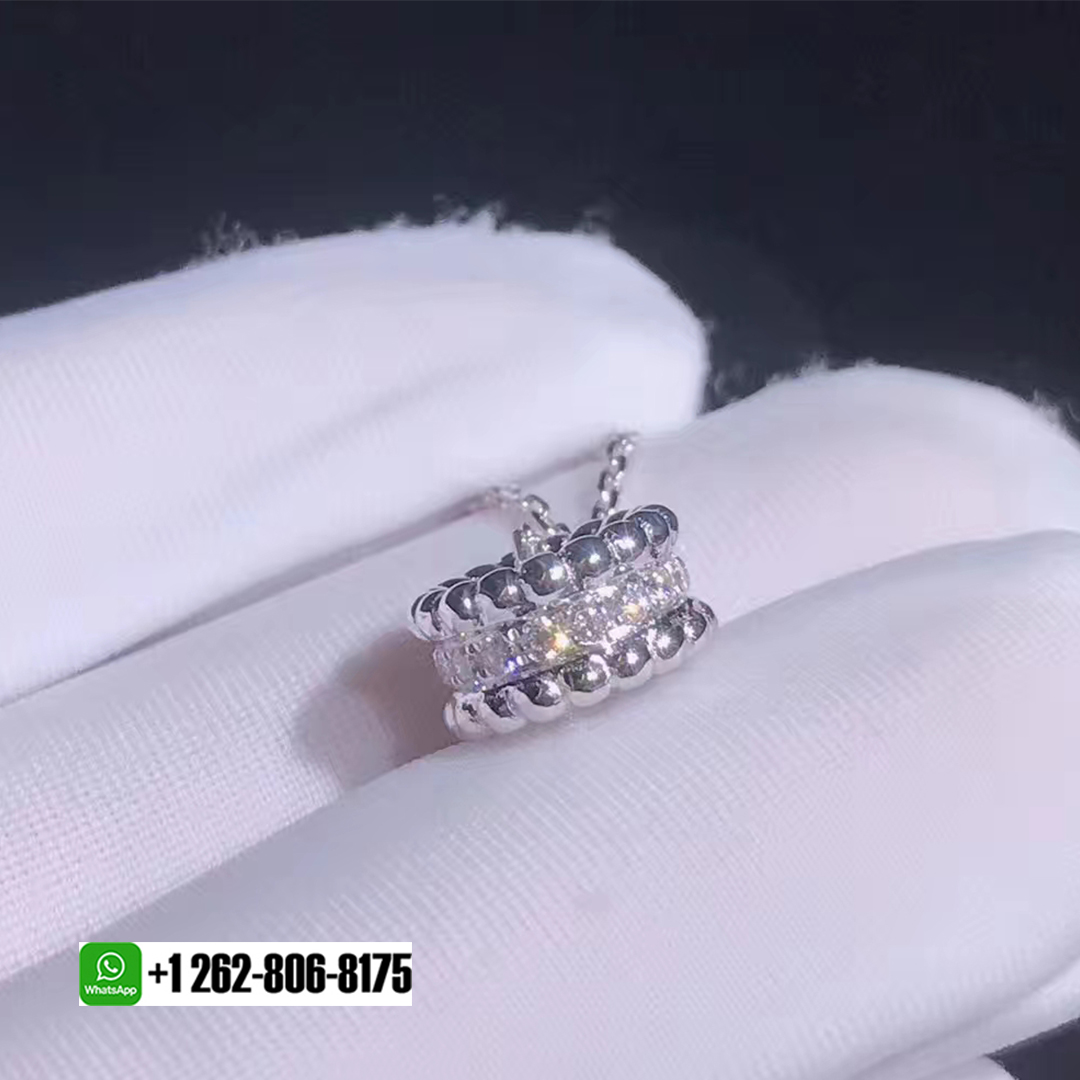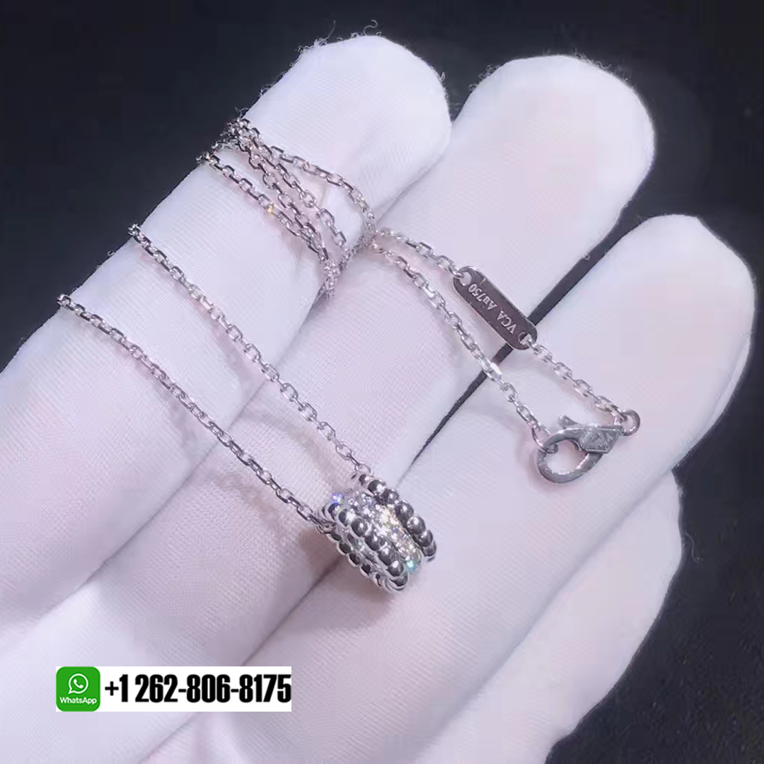 • Van Cleef & Arpels 18K White Gold Perlee Diamond 1 Row Pendant Necklace
