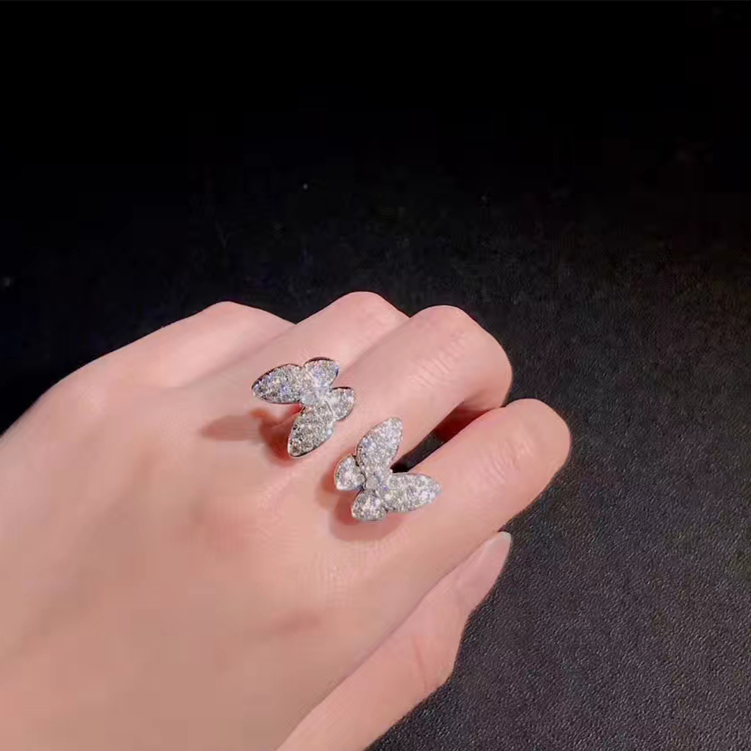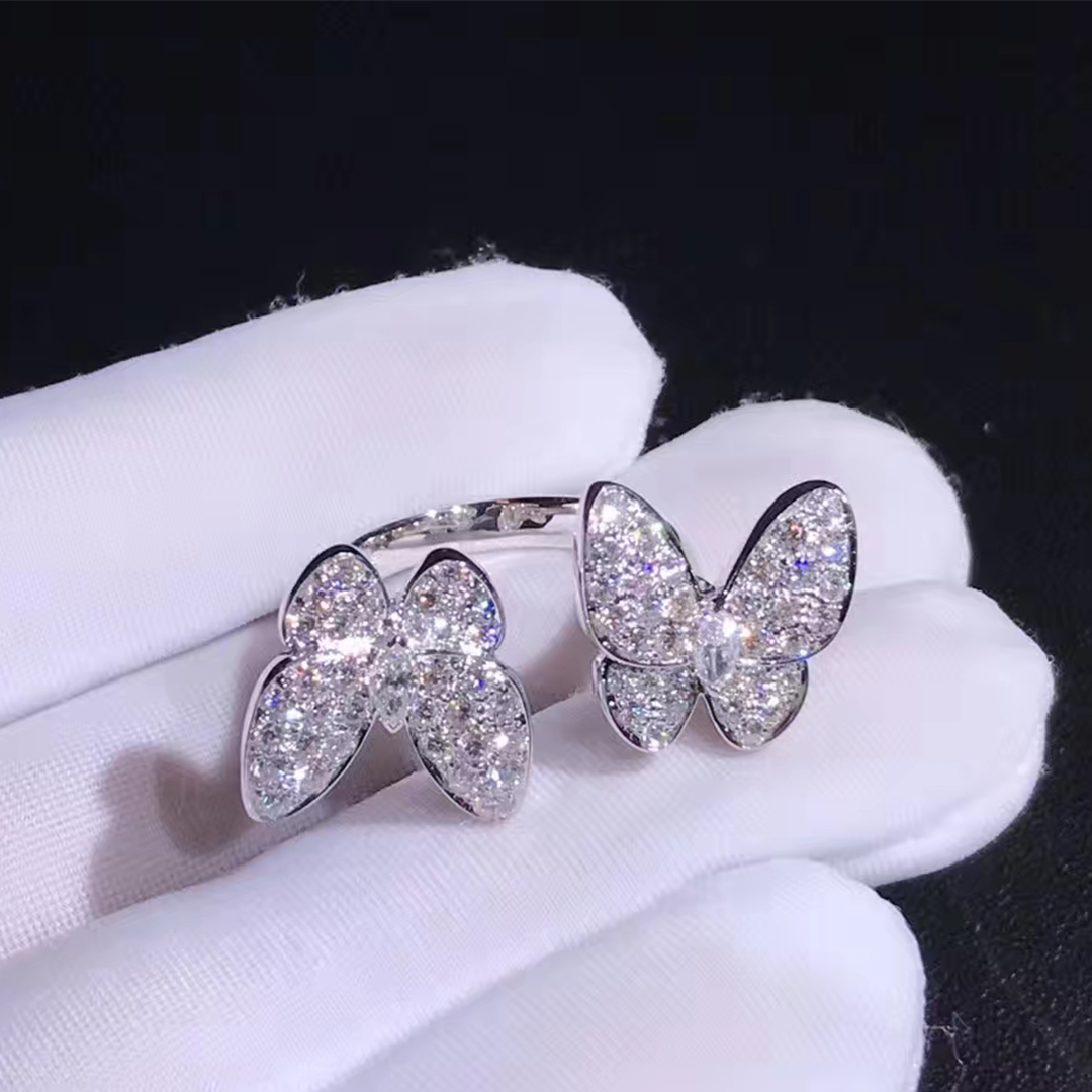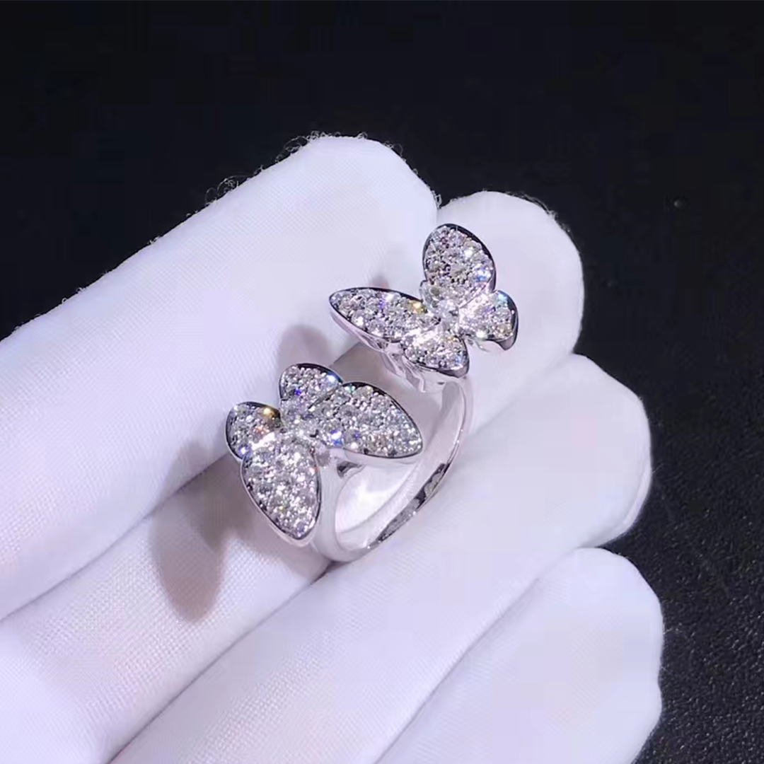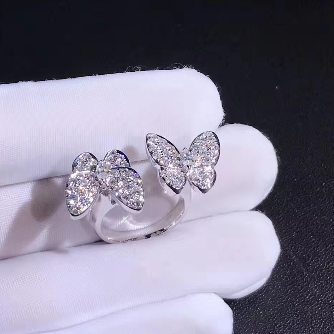 • Van Cleef & Arpels 18k White Gold Tow Butterfly Diamond Pave Between the Finger Ring VCARO61900