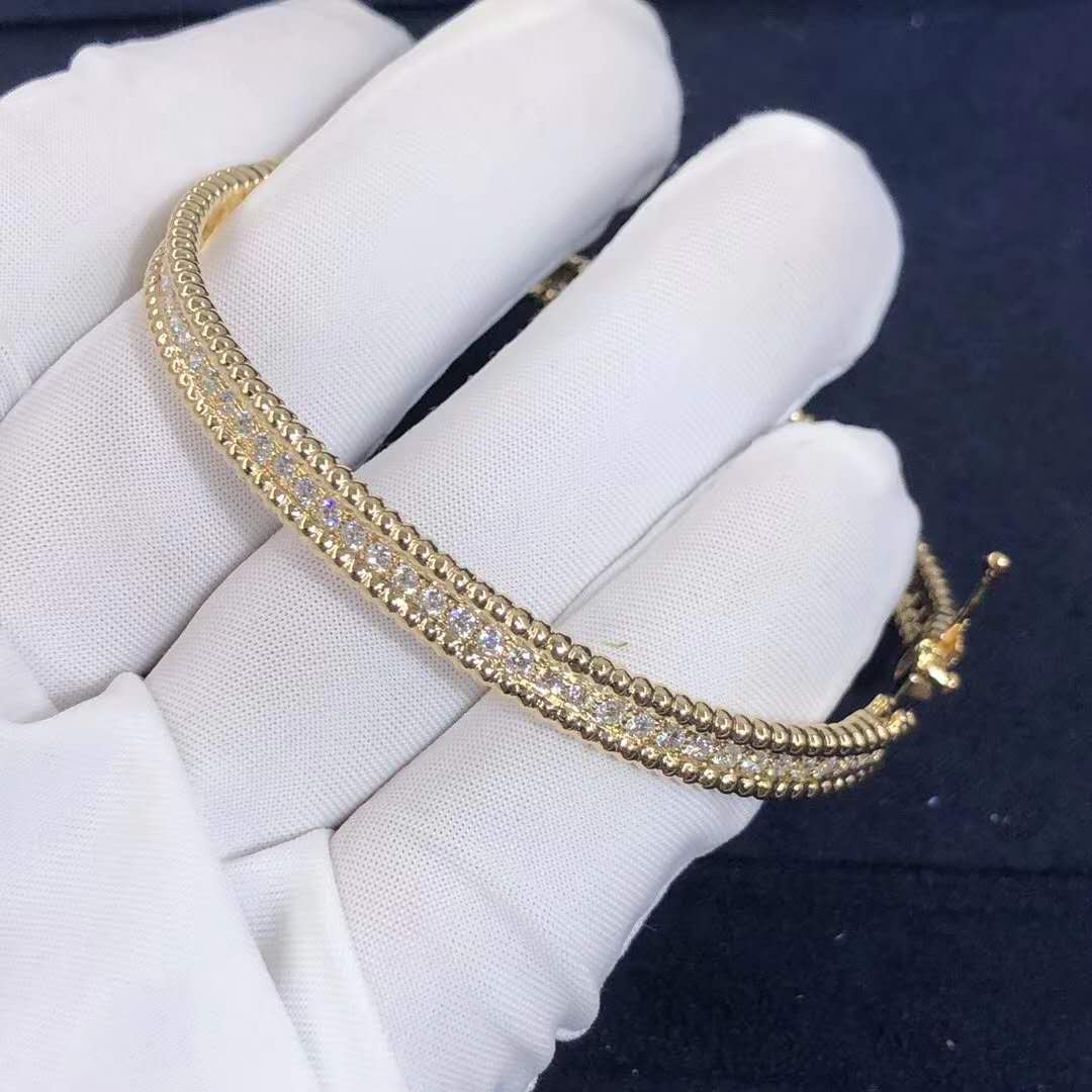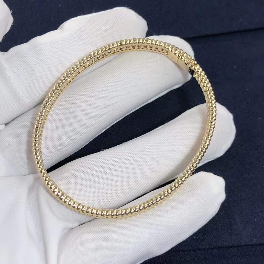 • Van Cleef & Arpels 18K Yellow Gold 1 Row Perlée Diamonds Bracelet Large Model VCARP27C00