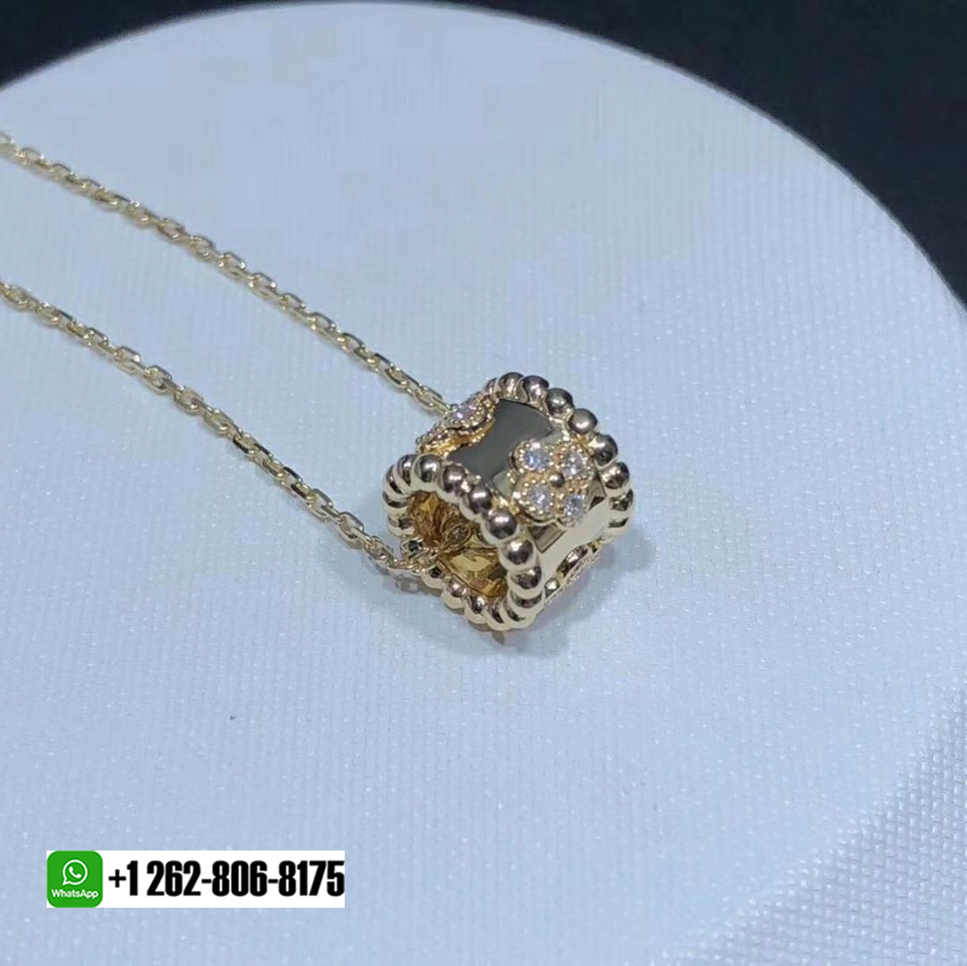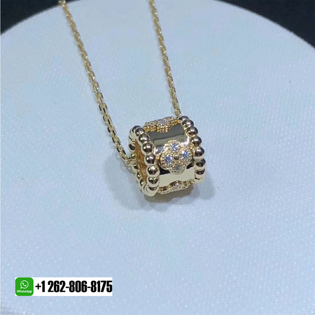 Perlée clovers pendant, yellow gold, round diamonds; diamond quality DEF, IF to VVS.