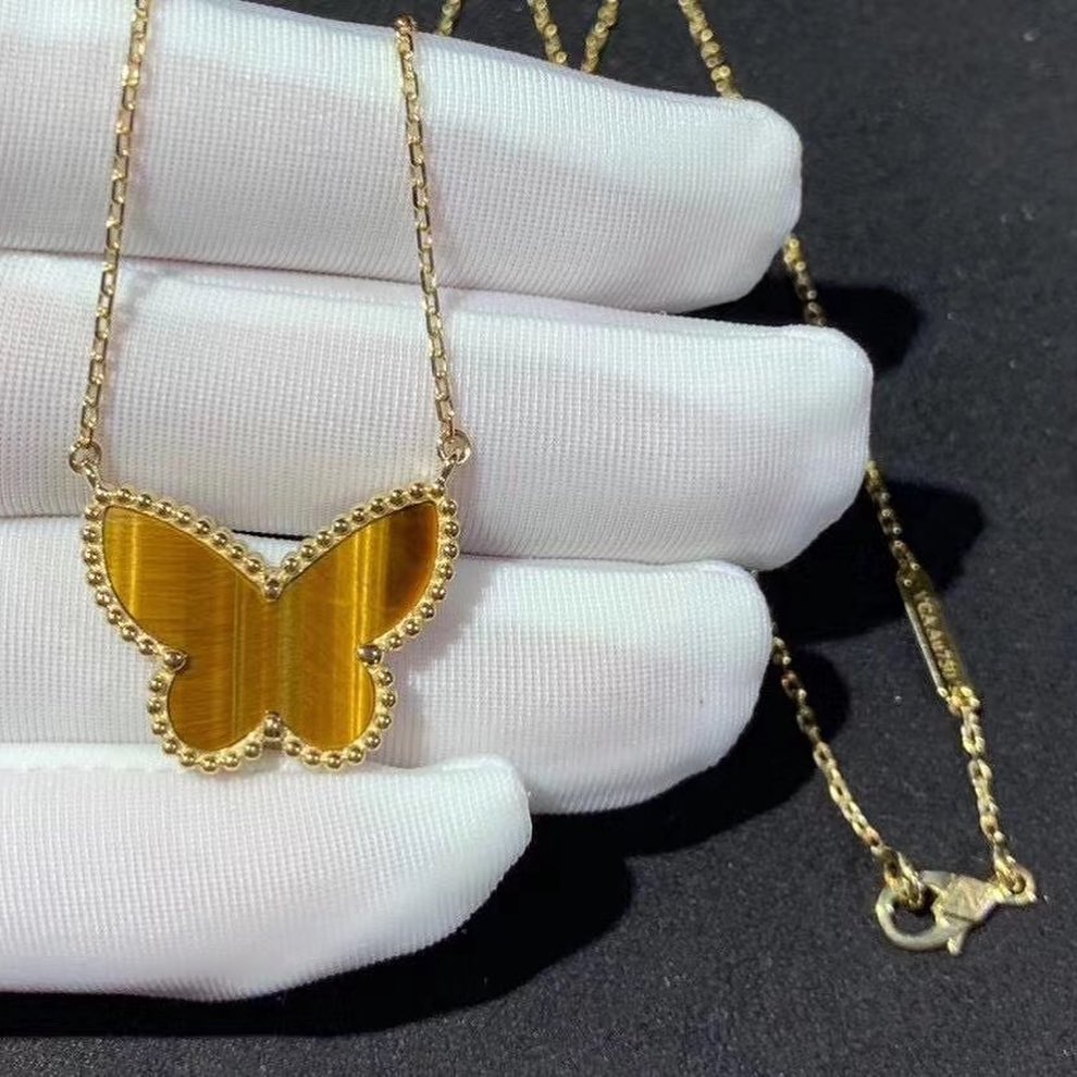 If you are interested in this Van Cleef & Arpels 18K Yellow Gold Tiger Eye Lucky Alhambra Butterfly Pendant Necklace, Please contact us via the contact form via whatsapp +1 262 806 8175 or email [email protected].
