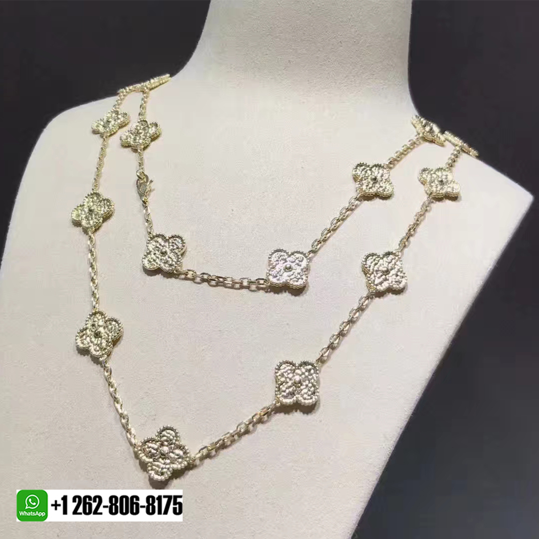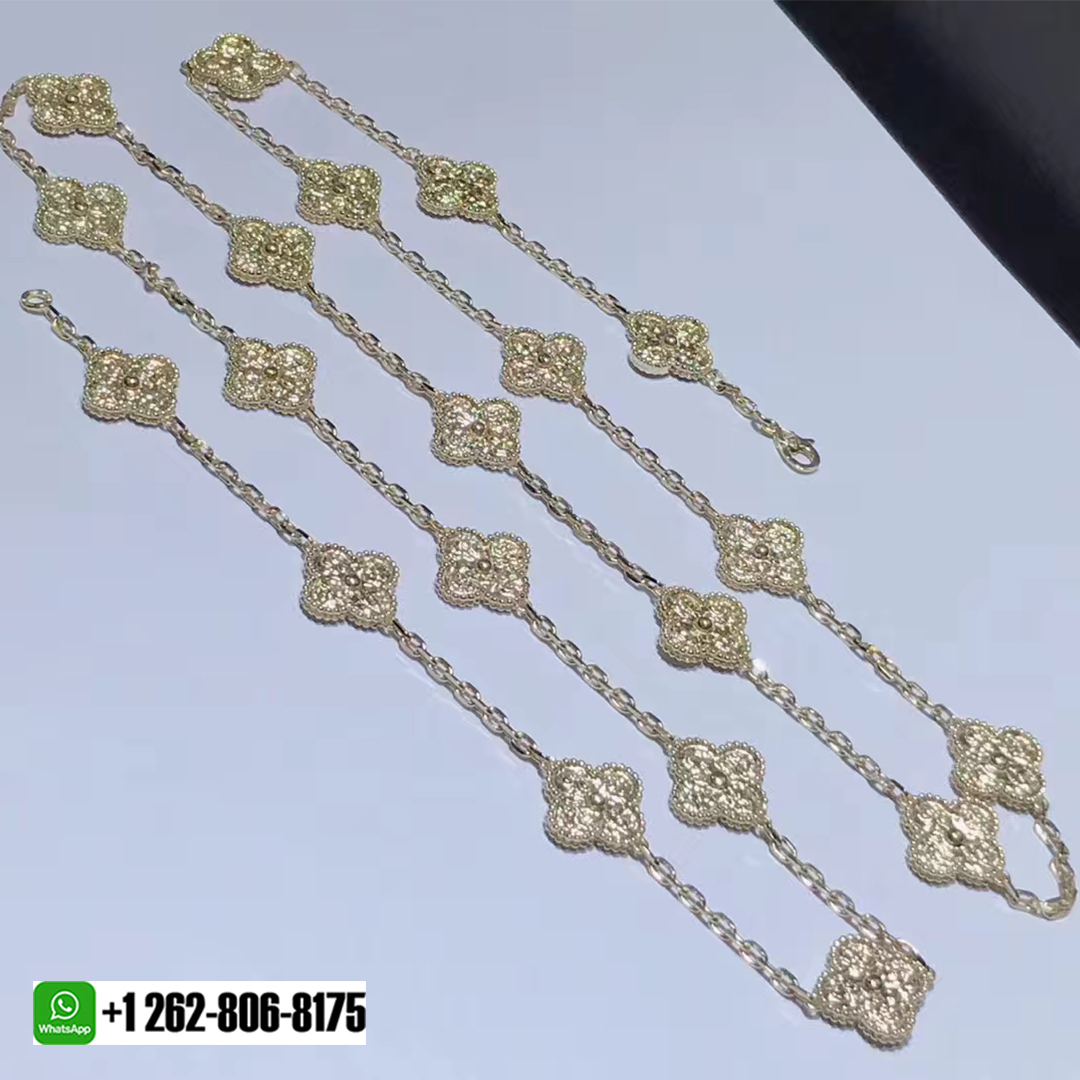 BeRealReal is a professional jewelry factory with more than 10 years experience. We can make any design of gold & diamond jewelry as per your requirements. If you are interested in this Authentic Van Cleef & Arpels Vintage Alhambra 18k Yellow Gold 20 Motifs Long Necklace, Please contact us via the contact form via whatsapp +1 262 806 8175 or email [email protected].