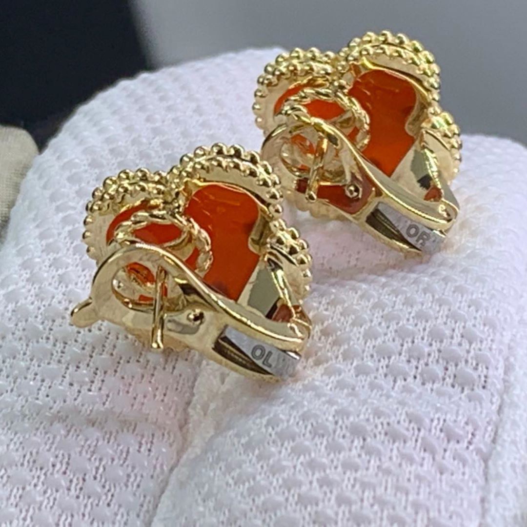 BeRealReal is a professional jewelry factory with more than 10 years experience. We can make any design of gold & diamond jewelry as per your requirements. Real solid 18k gold and genuine diamonds guaranteed. Top workmanship and factory direct selling. If you love this Authentic Van Cleef & Arpels Vintage Alhambra Carnelian 18K Yellow Gold Earrings, Please inquire us via E-mail [email protected] or Whatsapp +1 (262)806-8175 for pricing.