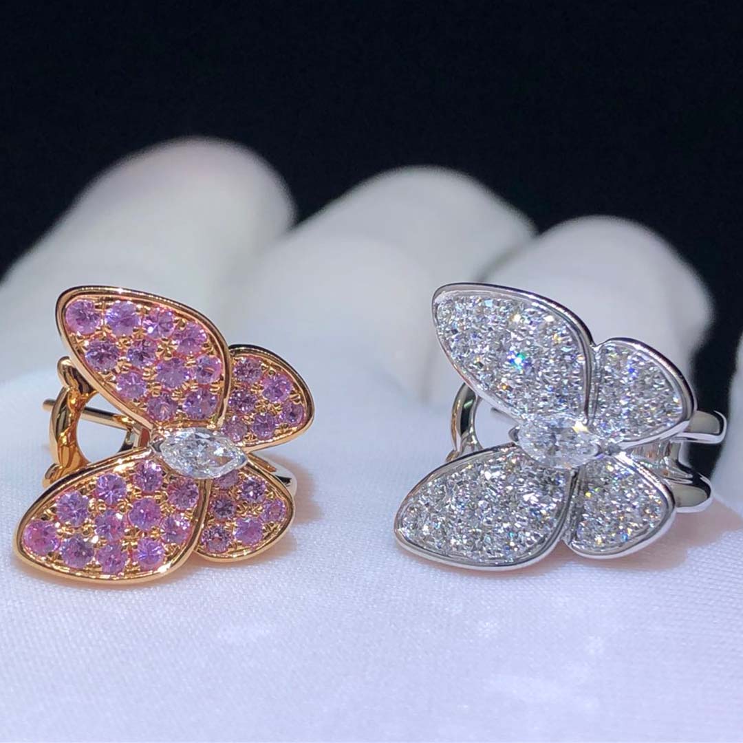 Buy Real solid 18k gold and genuine diamonds Van Cleef & Arpels jewelry from BeRealReal.com. Top workmanship and factory direct selling. If you love this Authentic Van Cleef & Arpels 18K White Gold & Rose Gold Diamond Pink Sapphire Two Butterfly Earrings, Please inquire us via E-mail [email protected] or Whatsapp +1 (262)806-8175 for pricing.