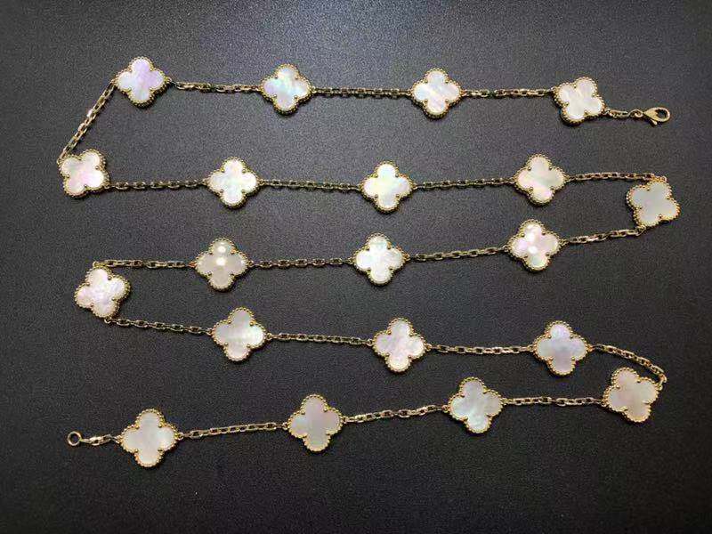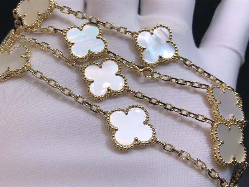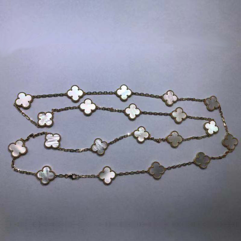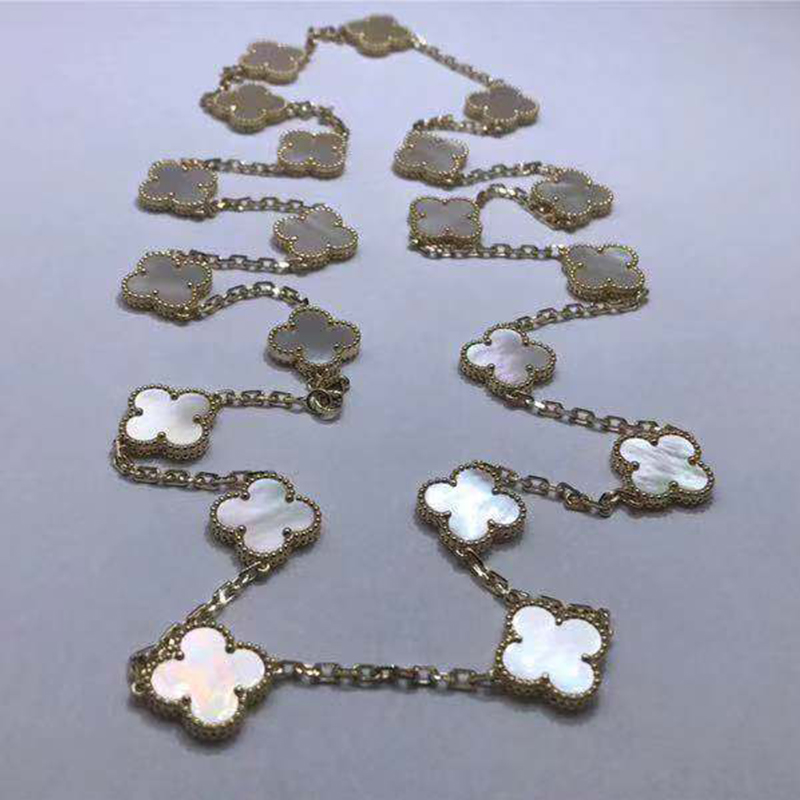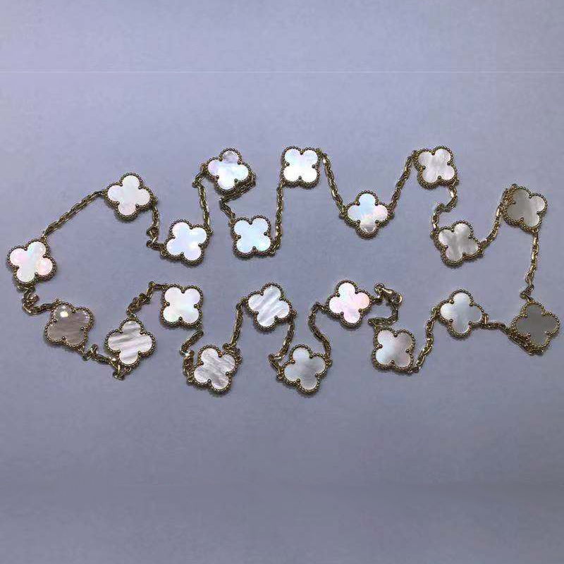 • VCA 18K Yellow Gold 20 Motifs White Mother of Pearl Vintage Alhambra Long Necklace VCARA42100