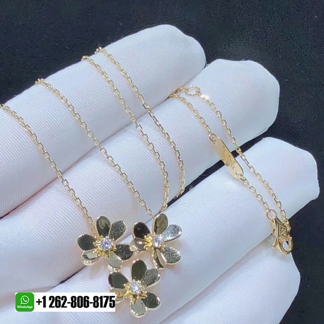 BeRealReal is a professional jewelry factory with more than 10 years experience. We can make any design of gold & diamond jewelry as per your requirements. If you are interested in this Authentic Van Cleef & Arpels 18K Yellow Gold and Diamonds Frivole 3-Flowers Mini Model Pendant Necklace, Please contact us via the contact form via whatsapp +1 262 806 8175 or email [email protected].