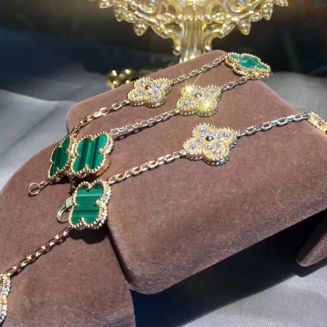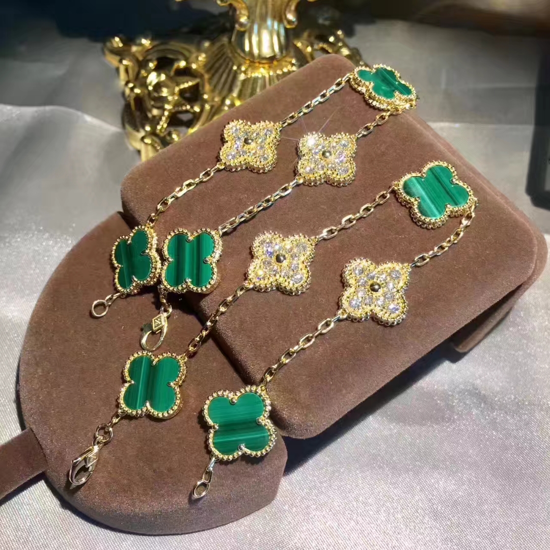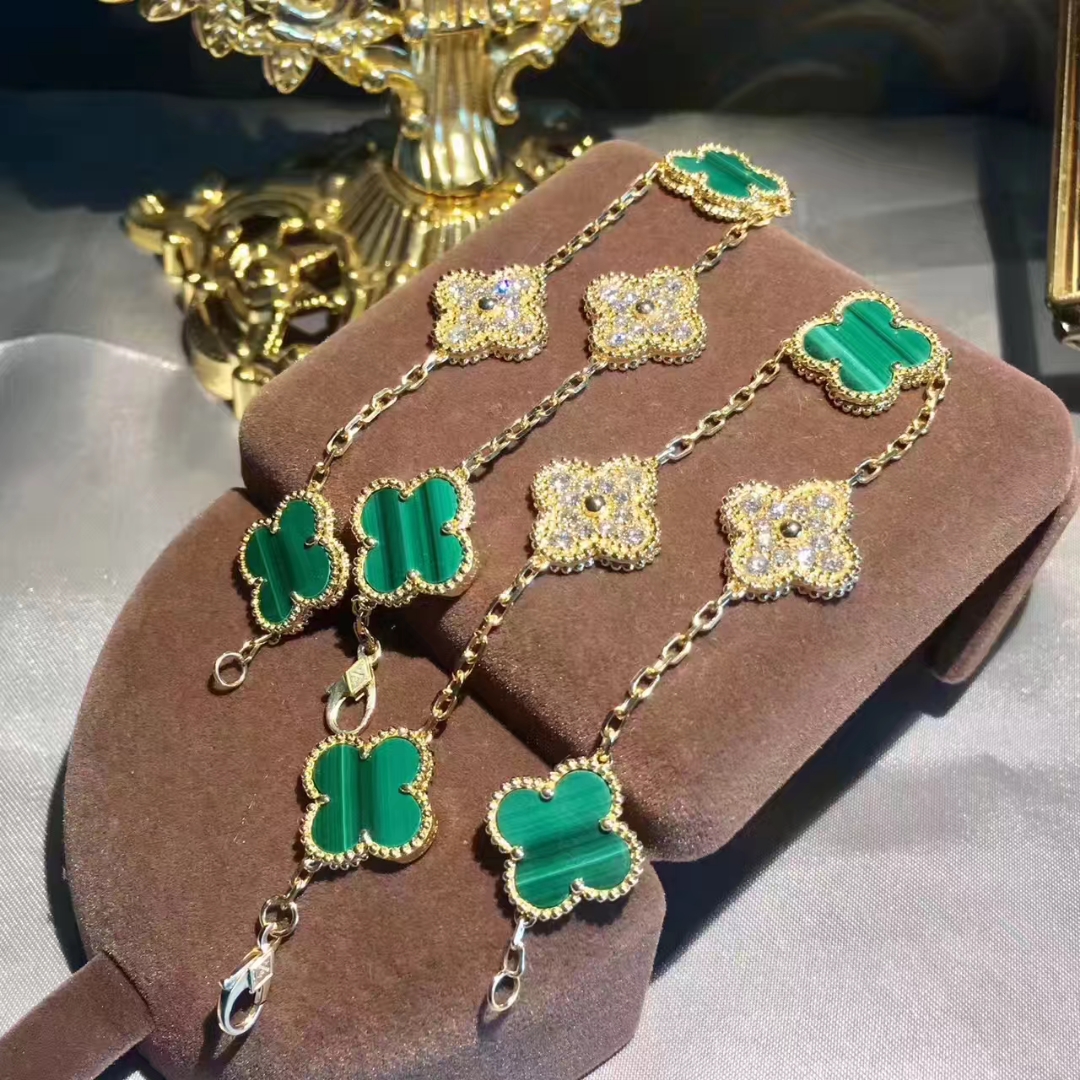 Do you love this Custom made Van Cleef & Arpels 18K Yellow Gold Diamond Malachite 5 Motifs Vintage Alhambra Bracelet? Here at BeRealReal.com, we can do specially for you in amazing price. 100% mirror quality, real solid 18k gold and genuine diamonds guaranteed. Top workmanship and factory direct selling. Please inquire us via E-mail [email protected] or Whatsapp +1 (262)806-8175 for pricing.