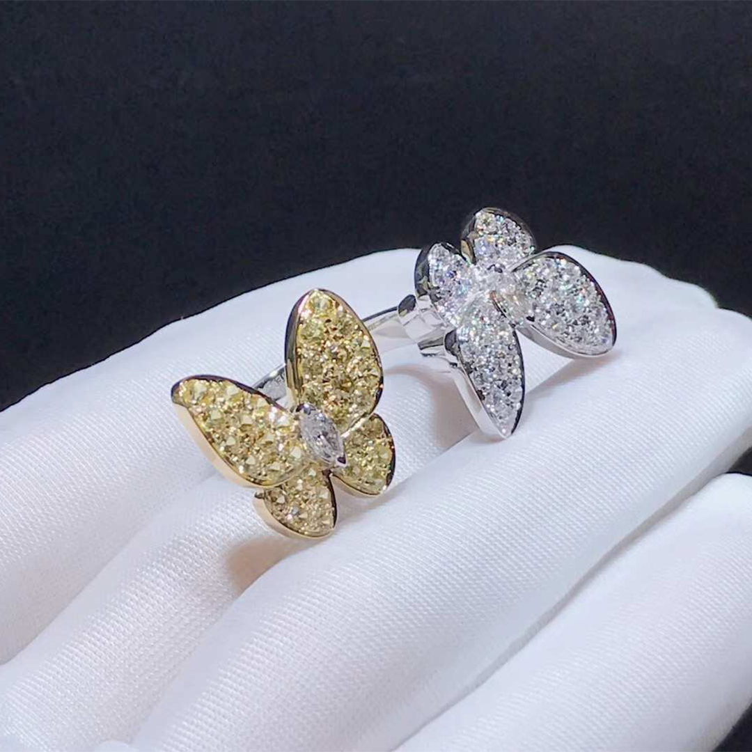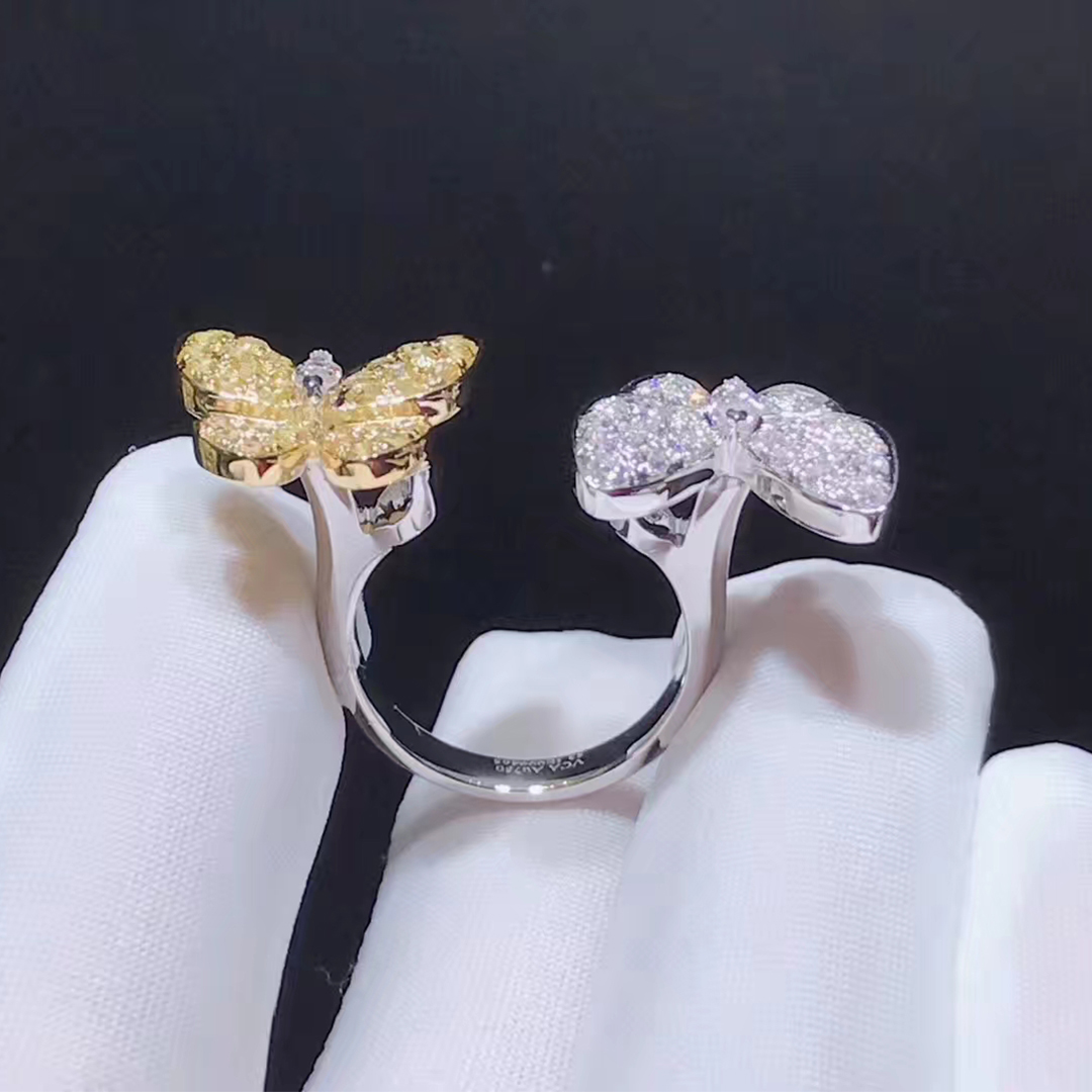• VCA Two Butterfly 18K Gold Diamond and Yellow Sapphire Between the Finger Ring VCARA13600